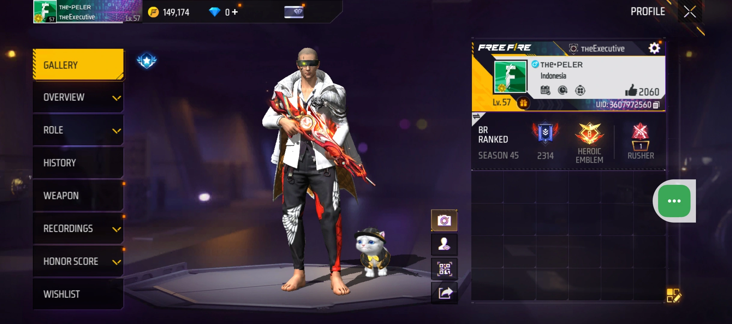 FF87|LV57/261 WEAPON (1 EVO + 51 Mythic)/MP5 ⸱ Platinum Divinity Lv. /198 COSTUME (14 Mythic)/38 EMOT (14 Mythic)/47 BACKPACK (1 Artifact + 21 Mythic)/9 SPORTS CAR (1 Mythic)