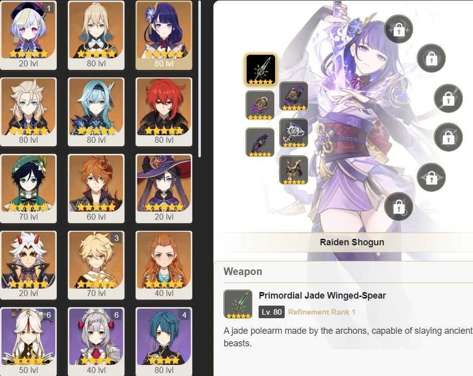 Asia ⸱ AR45 | 13 Legendary | Raiden Diluc Eula Albedo Jean Qiqi Mona Arataki C6 Noelle | Lumine