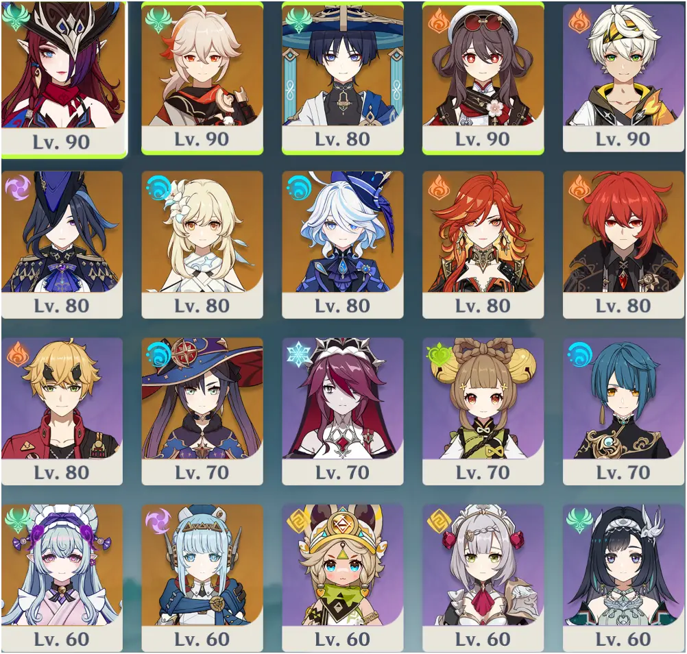 chasca kazuha wanderder clorinde furina mavuika inaffe hutao ar55+