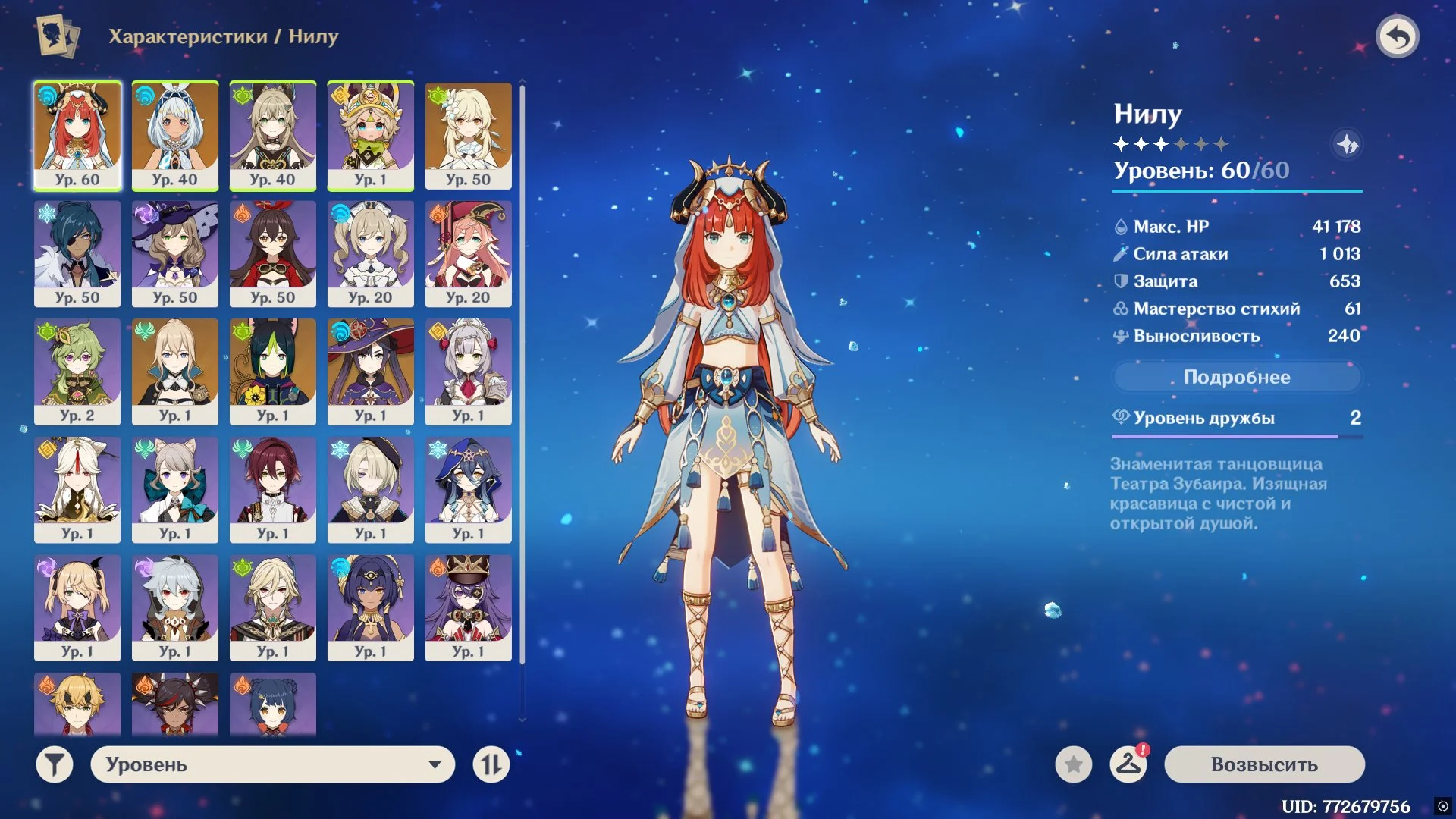 Europe ⸱ AR 50 | 7 Legendary: NILOU, MUALANI | No Email Access | Lumine | Event 3 | Standard 4 | Primogems 137