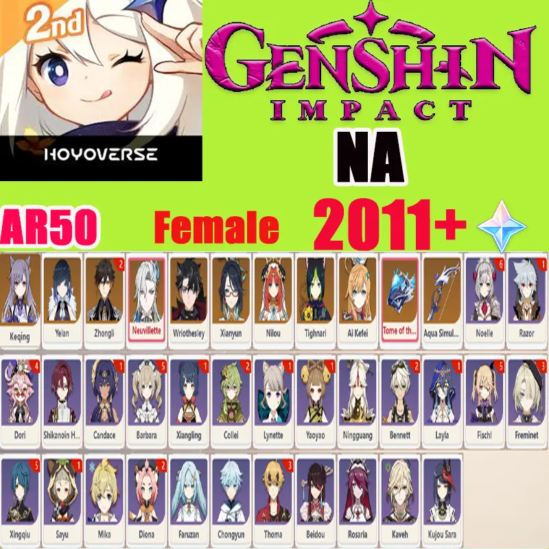 [NA]AR50|FiveStars*9|ZhongliC2+[Neuvillette+arms]+[Yelan+arms]+Wriothesley+Xianyun+Nilou+Ai Kefei+Keqing+Tighnari]+Five Star Weapons*2+Four stars*26||Email not set||See description and pictures for details|Fast shipping