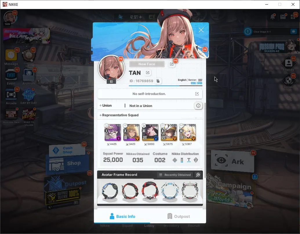 Global|15 SSR|SyncLV99|Gem42k|(Collab Clarie,Kurumi),Queency:Escape Queen,Chime,Laplace,Etc|Power 25K|Infinite Log|Check(GOV953)