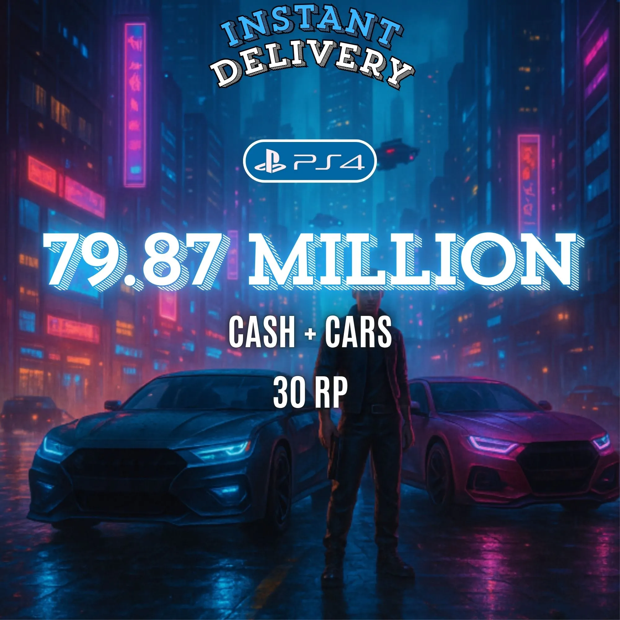 [PS4] GTA 5 Modded Account ⚔️ $79.87 Million Cash + Cars | RP Rank 30 | Instant Delivery | PZ46