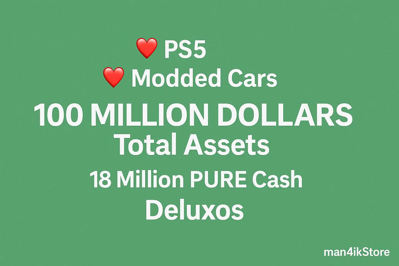 ❤️ PS5 ❤️ 10 Modded Cars ❤️ 100 MILLION DOLLARS Total Assets ❤️18 Million PURE Cash ❤️ Deluxos ❤️