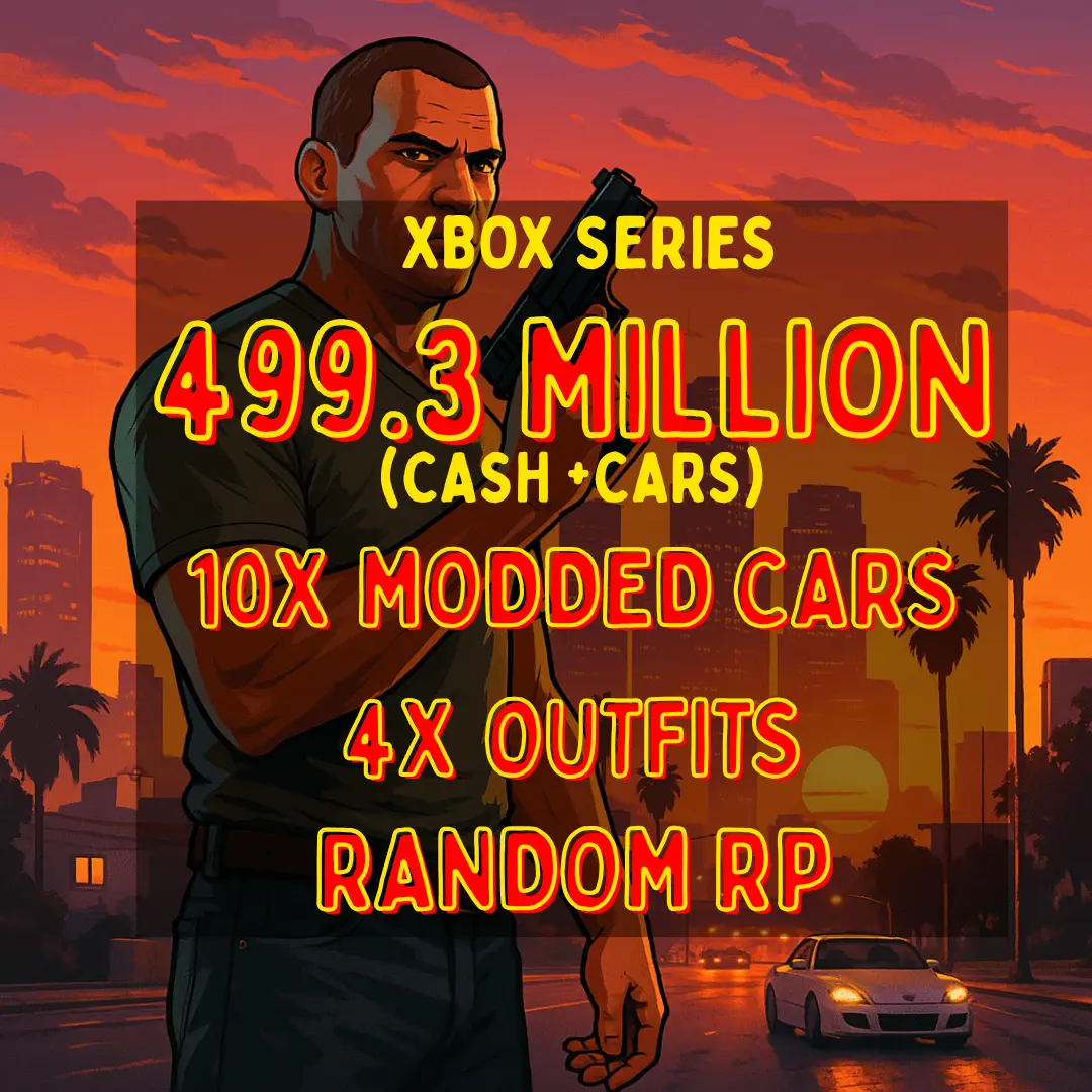 🦅 [XBOX SERIES] | 💷 499.3 Million Cash + 🚓 Deluxo | 🧩 RP Random | 🏁 10 Modded Cars 🎟️ 4 Outfits | 💫 GTA Modded Account |