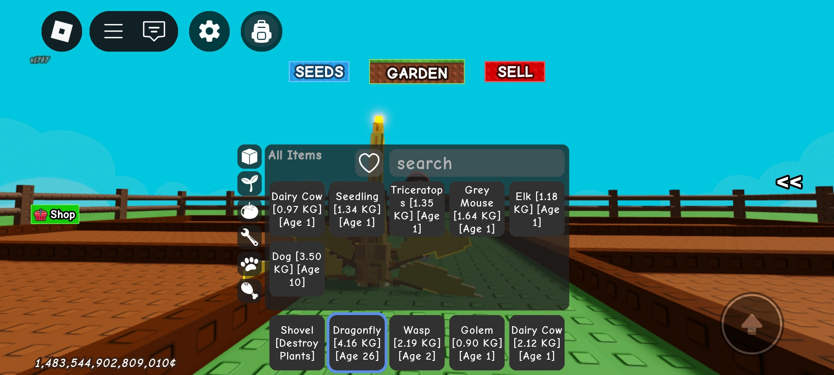 🍃🍃Grow a Garden ⸱ DRAGONFLY+1 quadrillion Sheckles $+10 PETS ⸱ Dairy Cow, Seedling, Triceratops, Grey Mouse, Elk, Dog, Dragonfly, Wasp, Golem, Dairy Cow