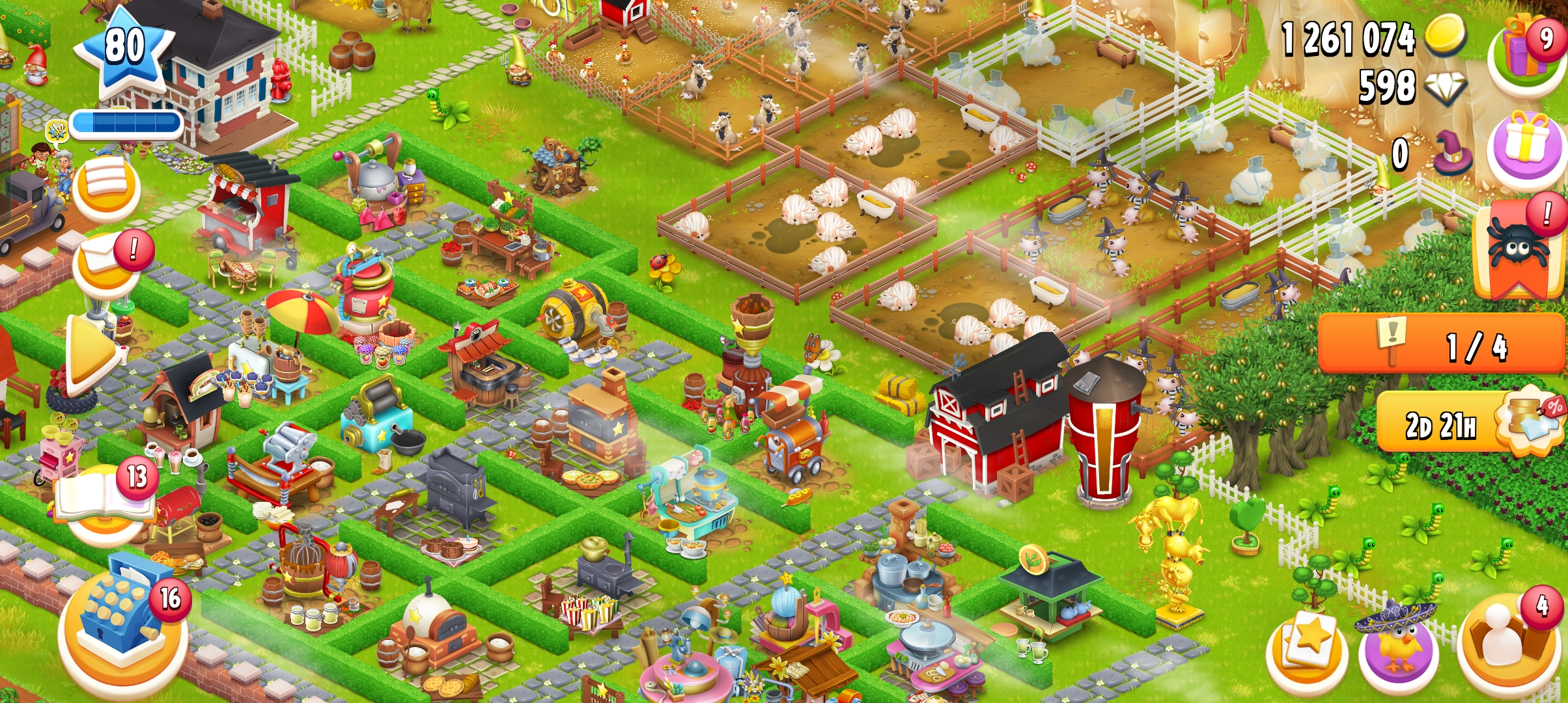 🌈 Decorative🌈Level: 80🌈Barn:1350🌈Silo:1400🌈gems:598🌈Coins:1261074🌈Instant Delivery🌈100% Safe Access🌈Best Price 🌈