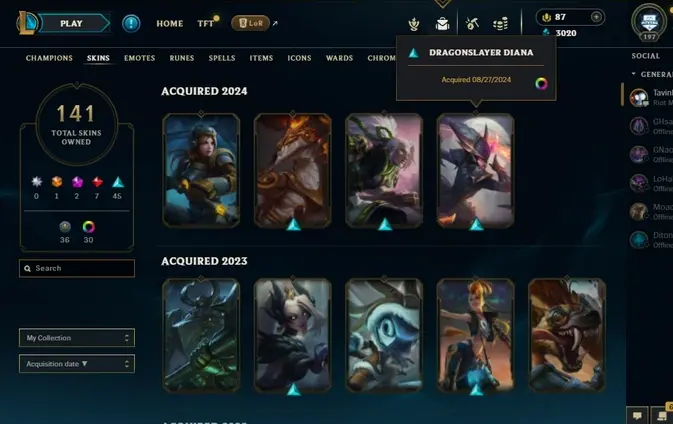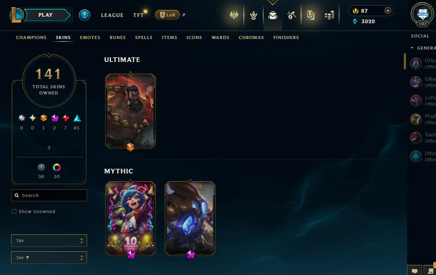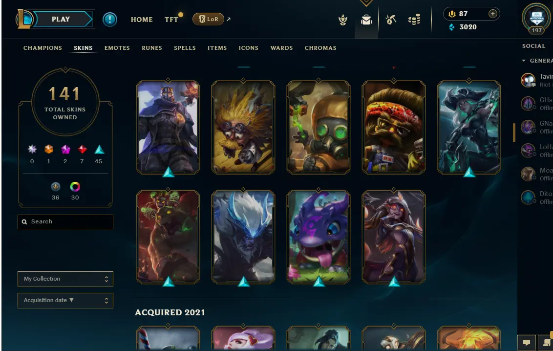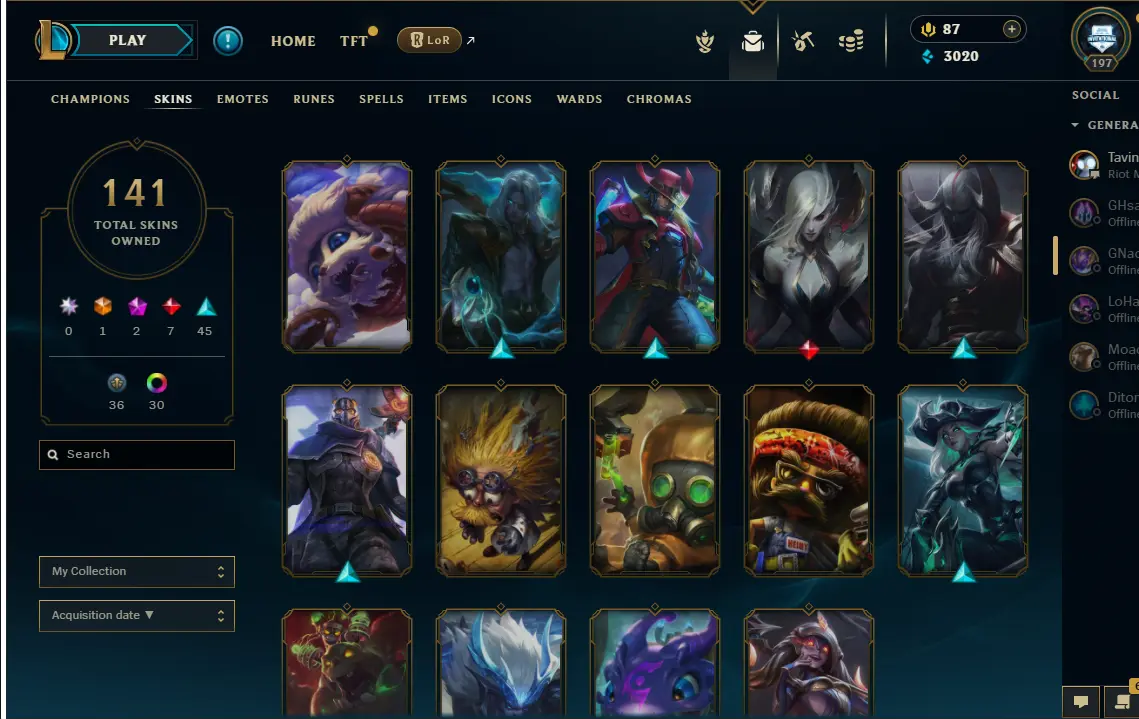 [ BR ] 🔥 ⸱ 197 LEVEL 📈 ⸱ UNRANKED 🔝 ⸱ 141 SKINS 🎭 [ 3470 BE 💰, 87 RP 💎 ] ⸱ HONOR LVL 2 🏆 ⸱ 132 CHAMP ⚔️ ⸱ RARE ACC 🏅 (2010)