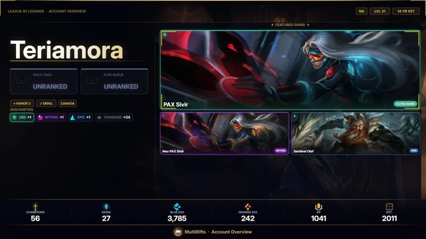 ![[NA] 1809 skins ~ PAX Jax🎁 + PAX Sivir🌟 + Dark Cosmic Erasure Jhin🌌 + Black Alistar🐄 + Ufo Corki🚀 + Victorious Jarvan IV🏆 + 906 Chromas🌈 + Tft Loot + First Email📧 + Recovery Info🔐](https://cdn.gameboost.com/games/league-of-legends/tiers/sm/Unranked.webp)