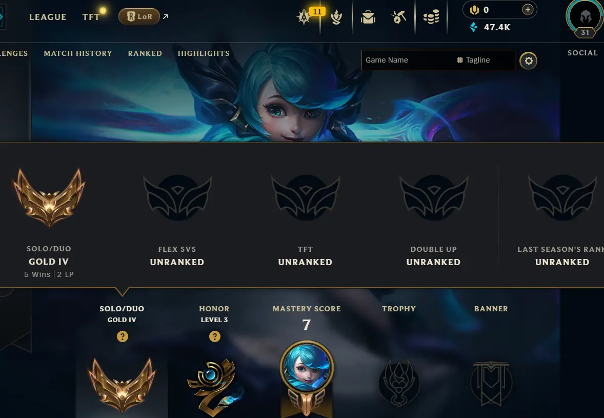 ⚡ 【 EUNE】 ⸱ GOLD IV 100% WR ⚡ | Hand Boosted ✌️ | Unverified ✅ | 47485 BE 💵 | Check Description 🔰
