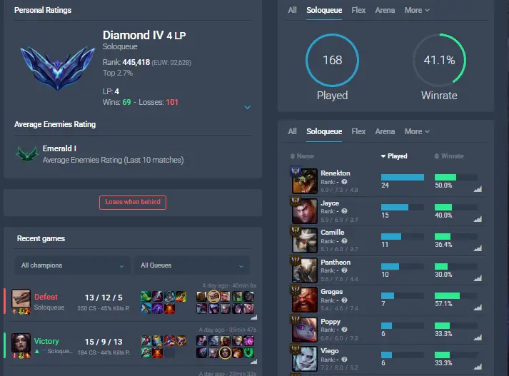 ✅EUW Emerald I(TOP/JNG)75 LP✅61 CHAMPIONS✅2 SKINS✅HIGH MMR +24 /-16 LP GAIN✅ FULL SAFE ACCOUNT✅