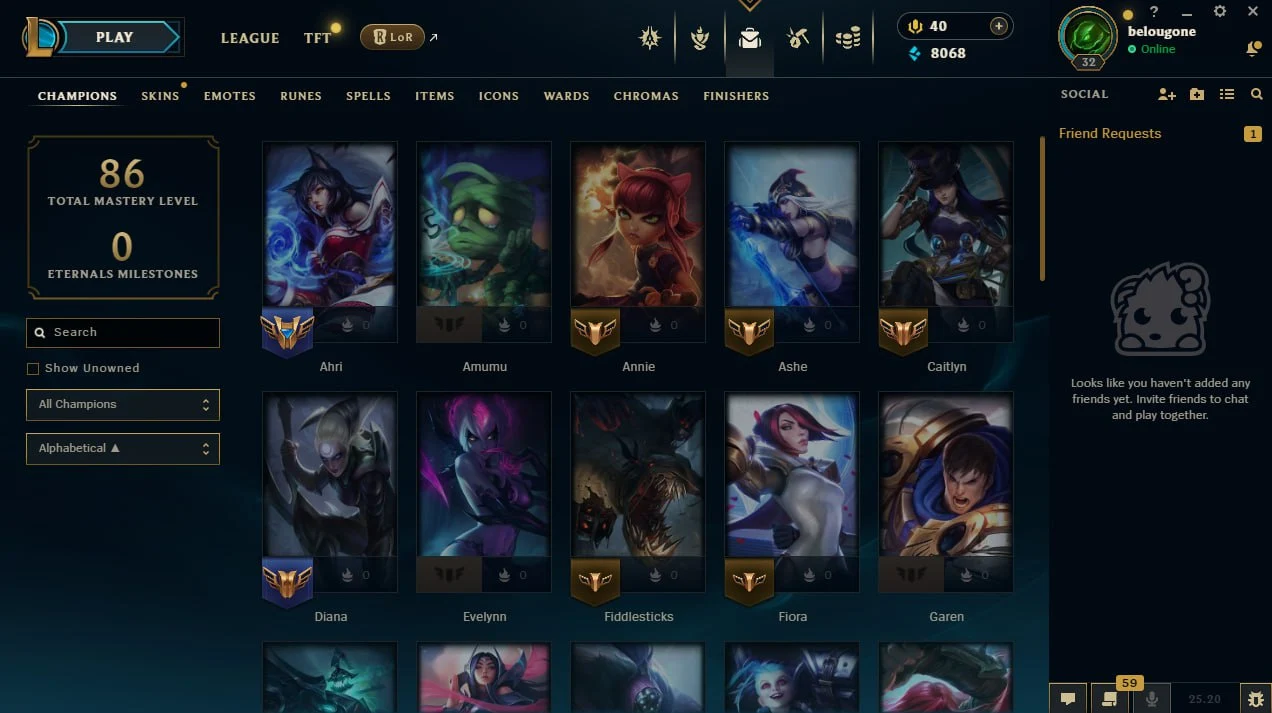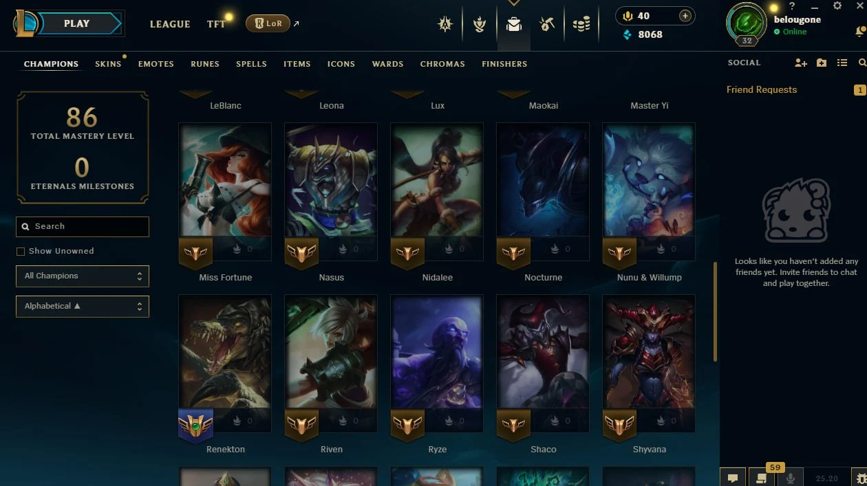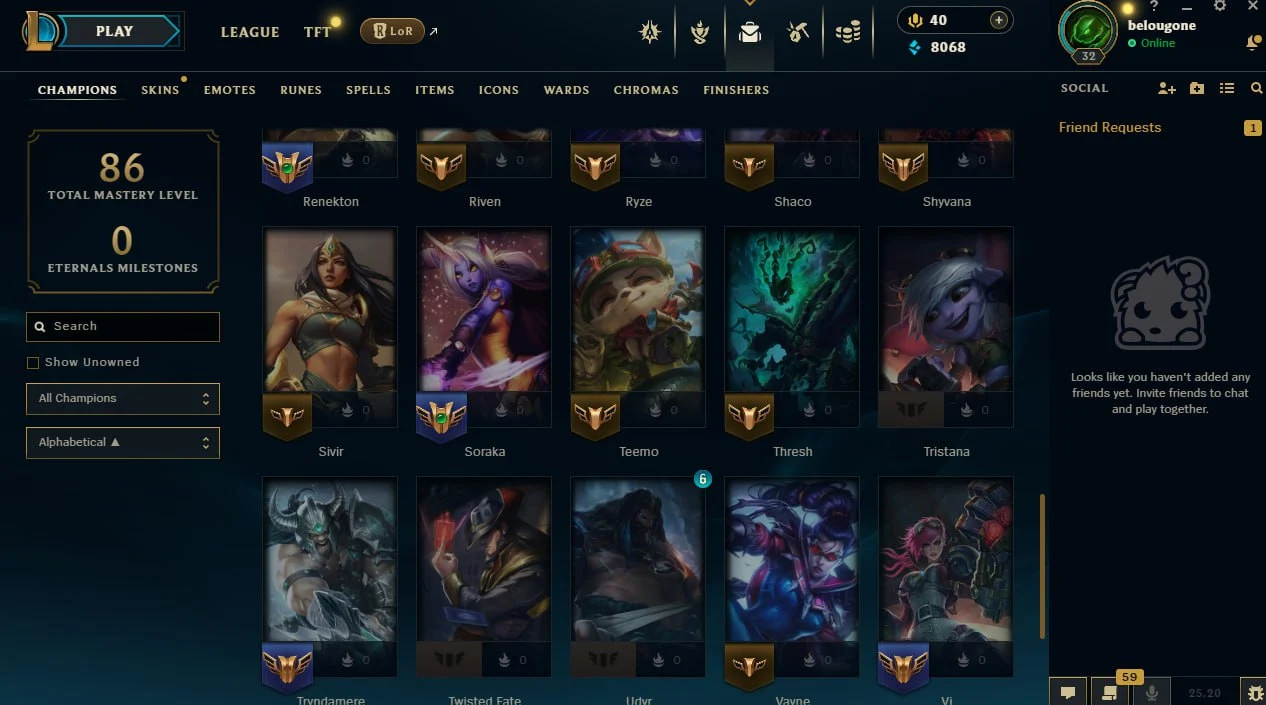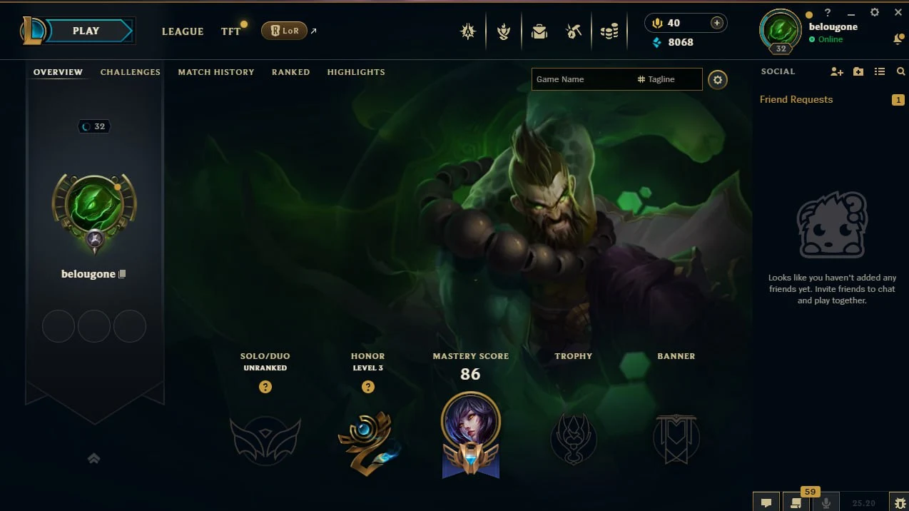 [EUW] ⸱ LEVEL 32 ⸱ UNRANKED ⸱ 30 SKINS [ 8068 BE , 40 RP ] ⸱ 44 CHAMP