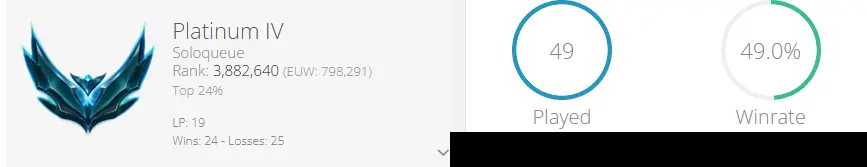 EUW⚔️☢️%48.98 Win Rate Platinum 4☢️🍀18075 Blue Essence🍀Auto Delivery📢More Details in description📢 Platinum IV