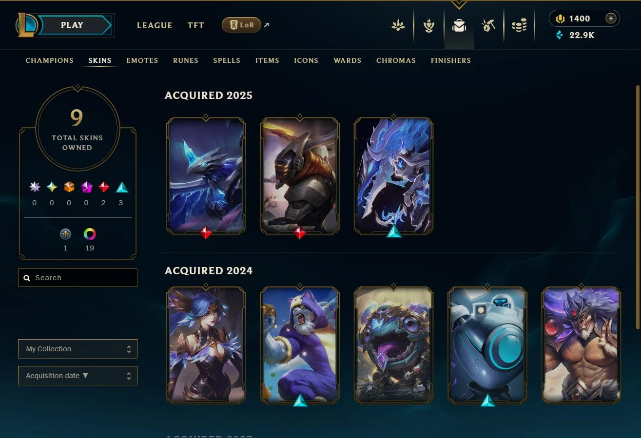 👑HAND MADE👑(EUW) EMERALD IV 🚀9 SKİNS⚡1400 RP