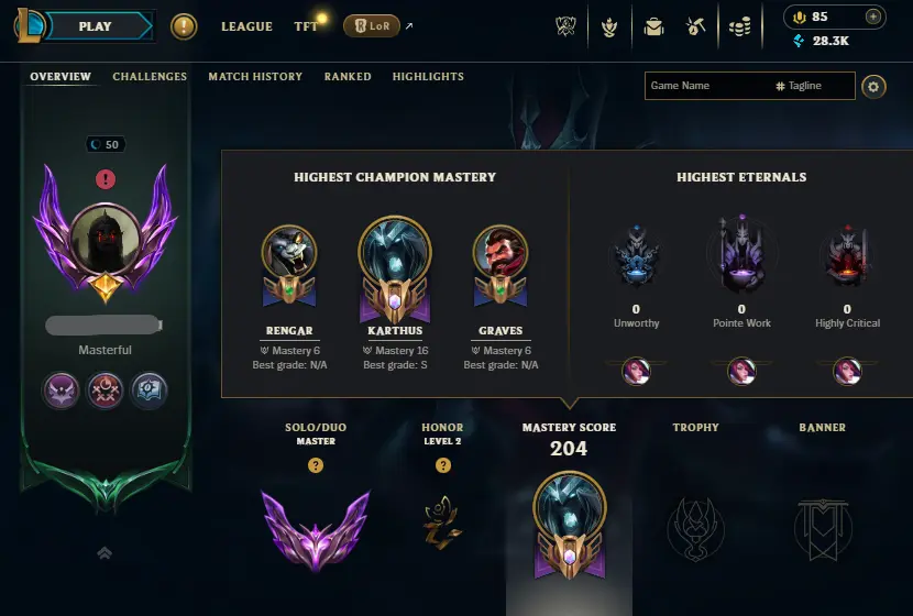 🔥LVL50 Master 160LP 76%WR Handleveled💎28K BE 73Champs 12Skins✅Lifetime Ownership Guarantee ⸱ Never Taken Back