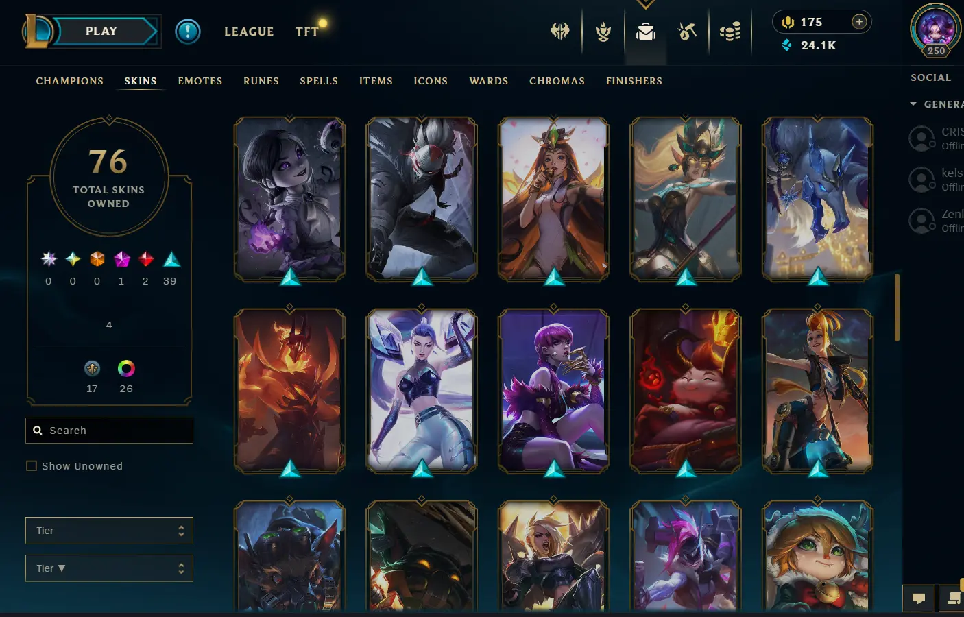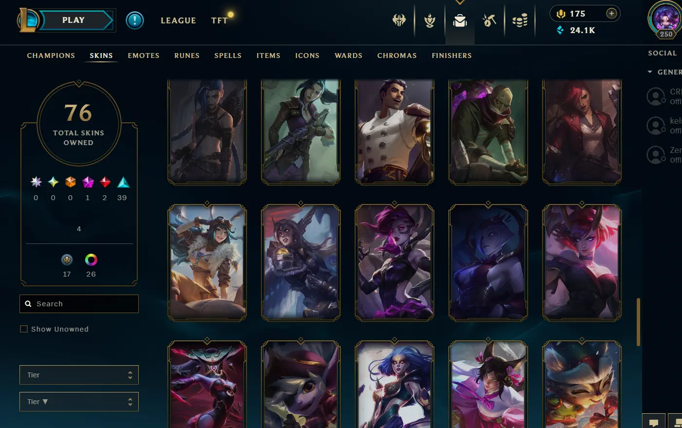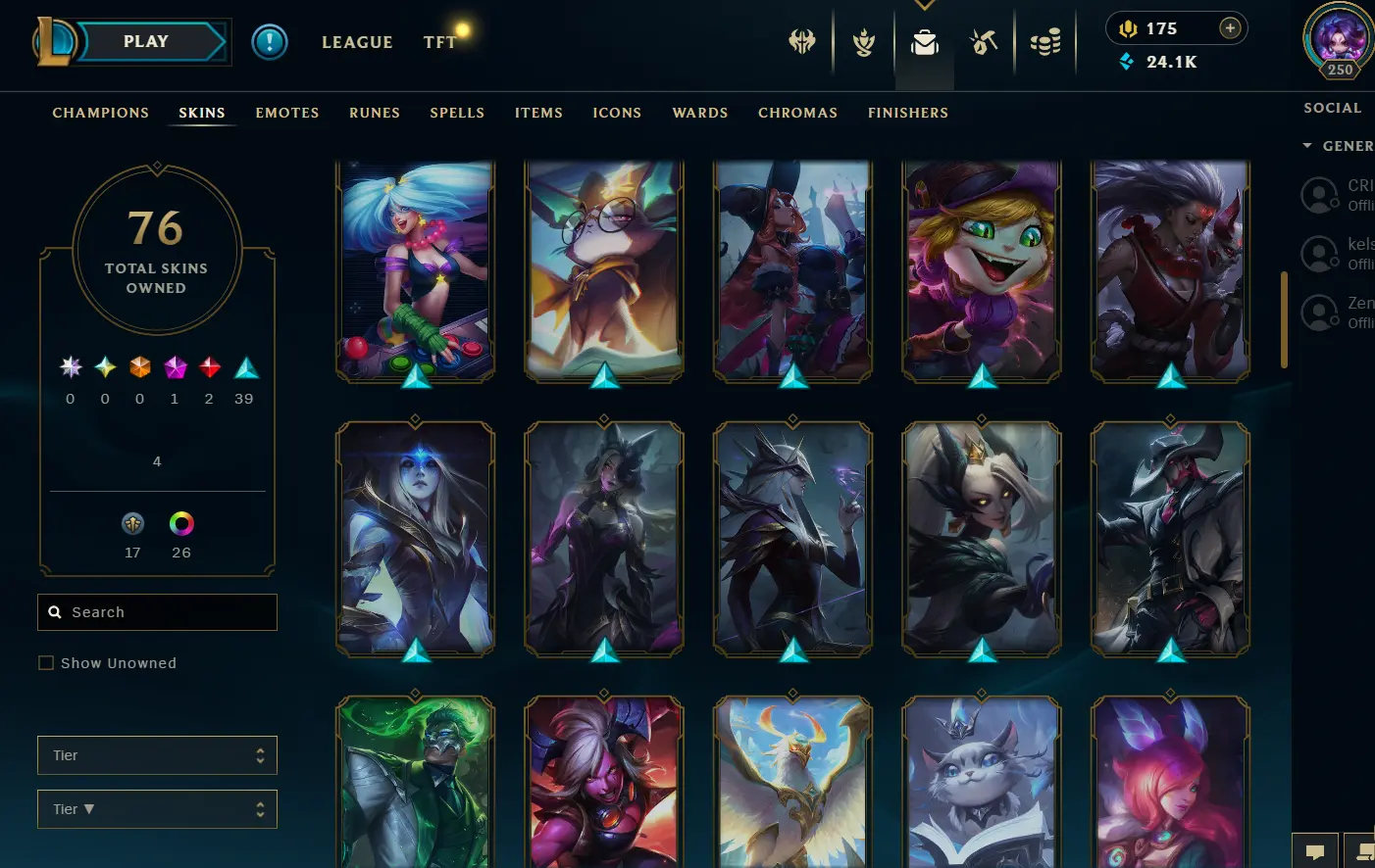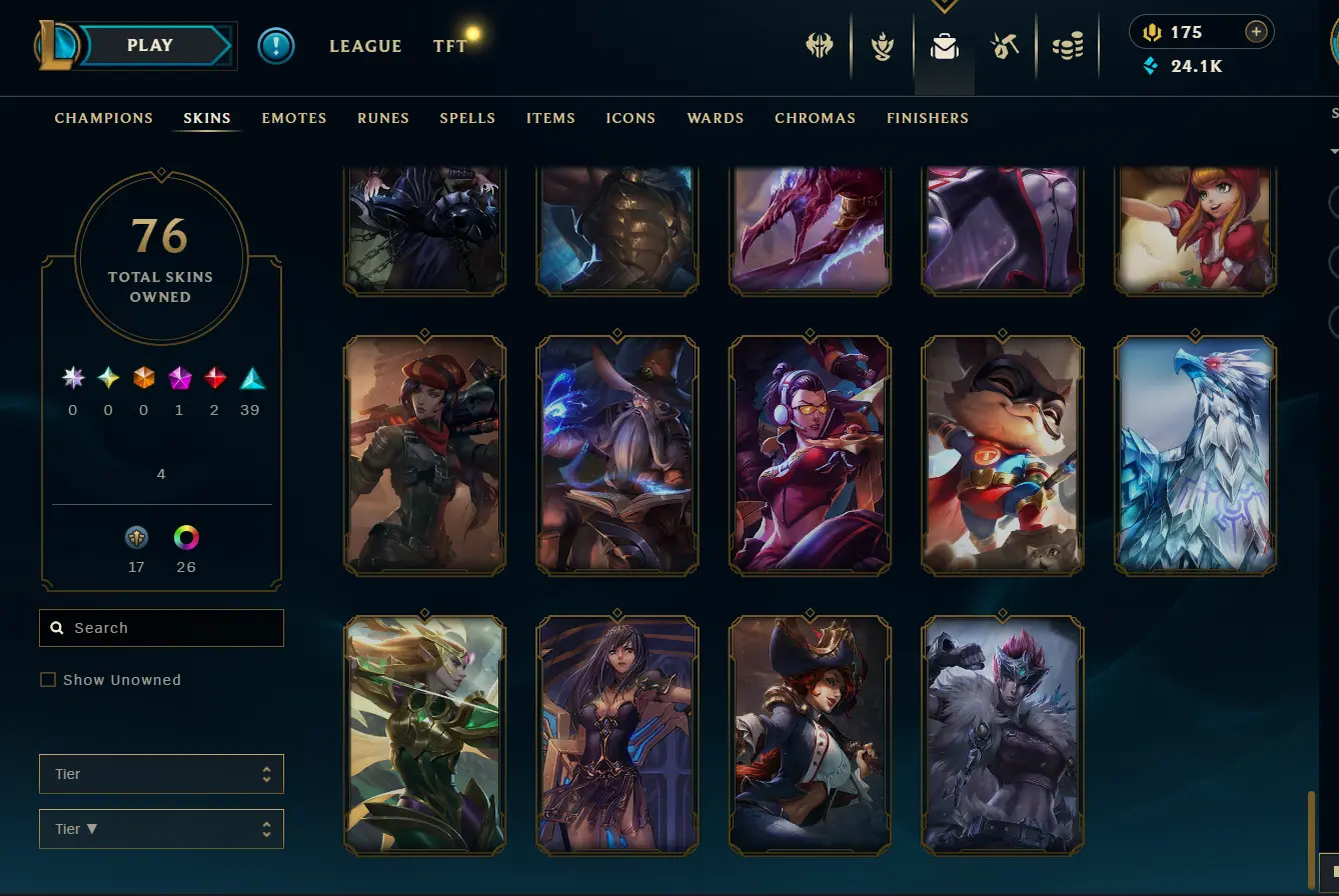 [ ME ] -250 LEVEL ⸱ UNRANKED ⸱ 76 SKINS [ 24142 BE ,175 RP ] ⸱ HONOR LVL 2 ⸱ 83 CHAMP