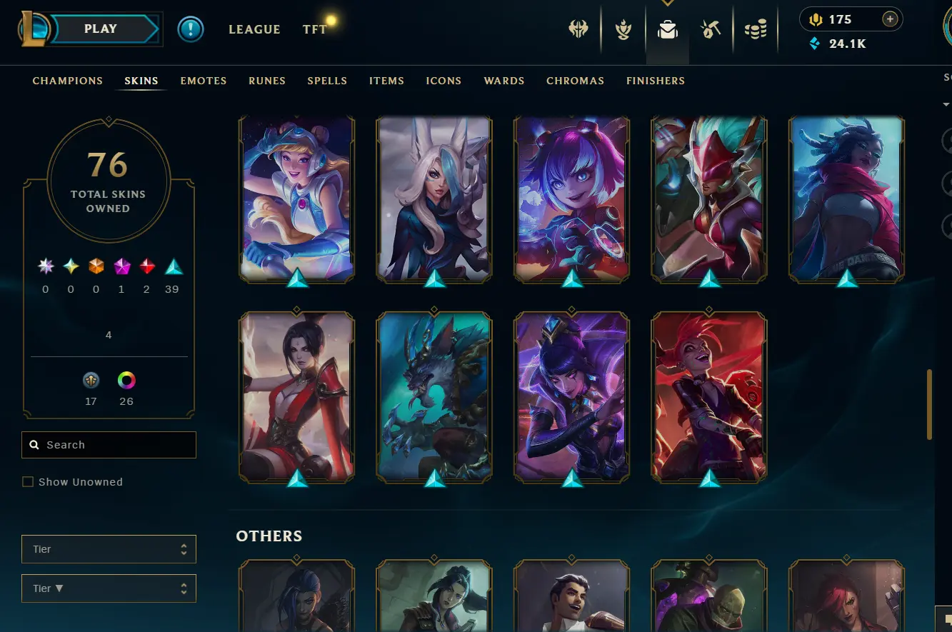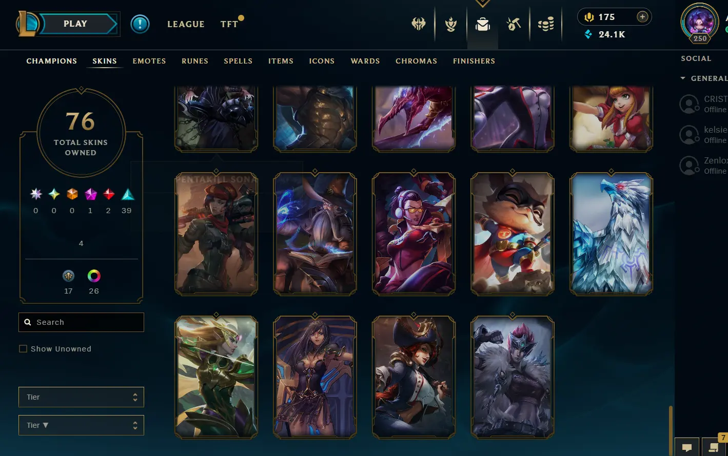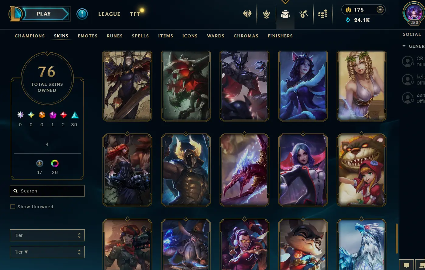 [ ME ] -250 LEVEL ⸱ UNRANKED ⸱ 76 SKINS [ 24142 BE ,175 RP ] ⸱ HONOR LVL 2 ⸱ 83 CHAMP