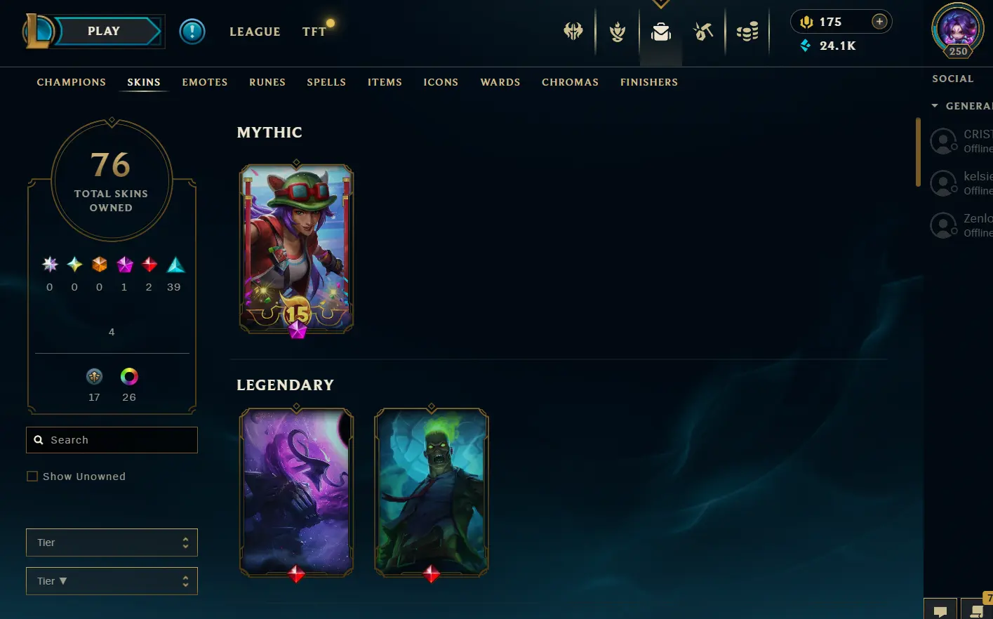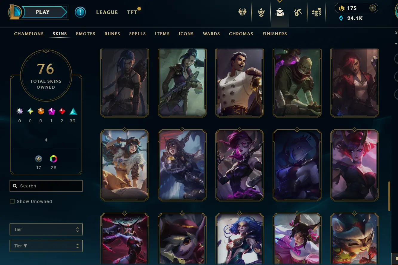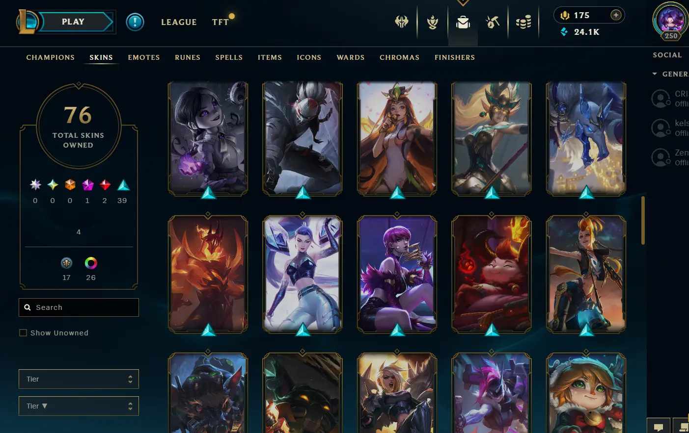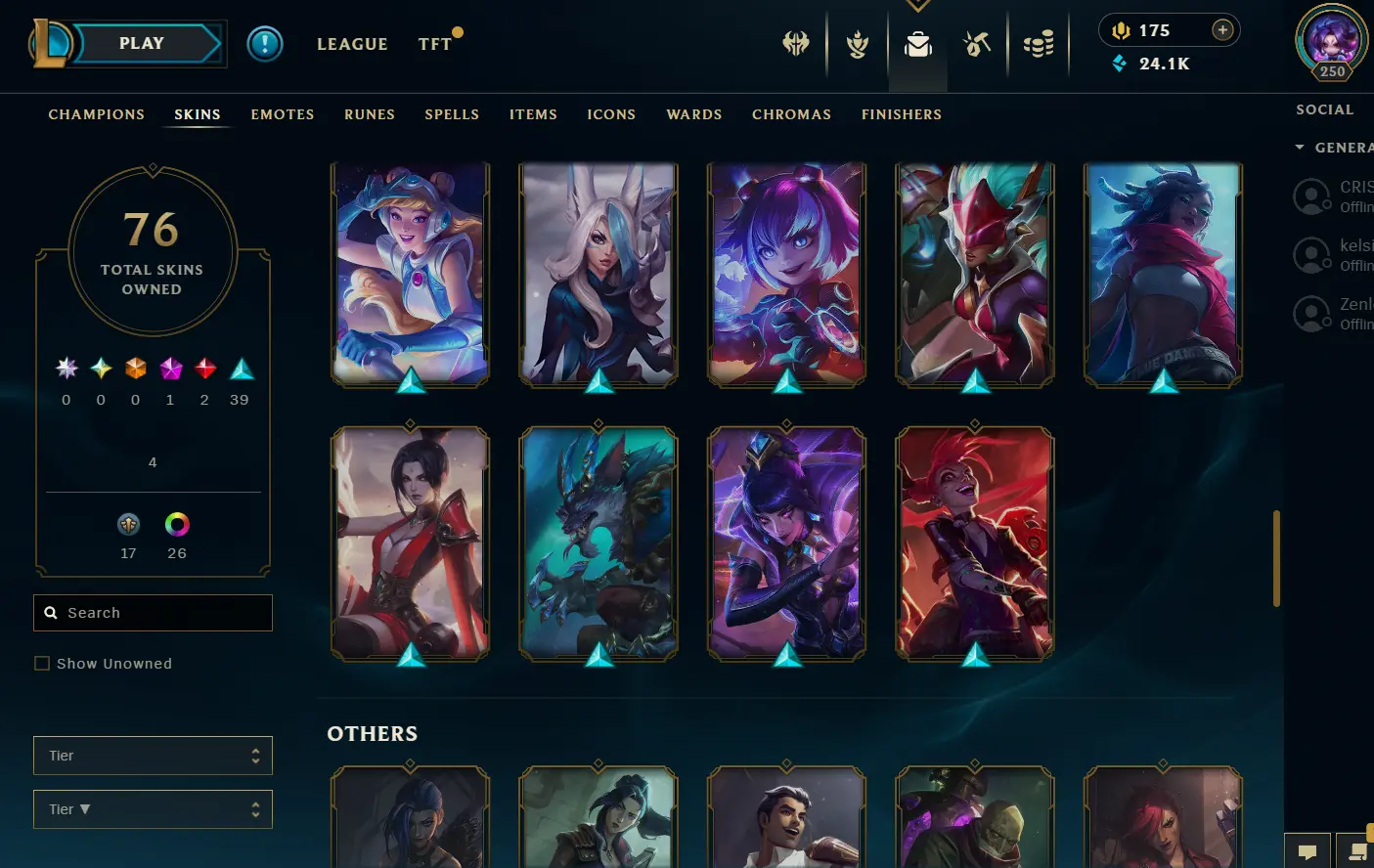 [ ME ] -250 LEVEL ⸱ UNRANKED ⸱ 76 SKINS [ 24142 BE ,175 RP ] ⸱ HONOR LVL 2 ⸱ 83 CHAMP