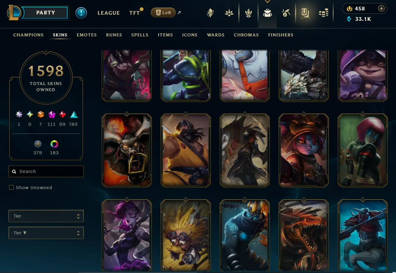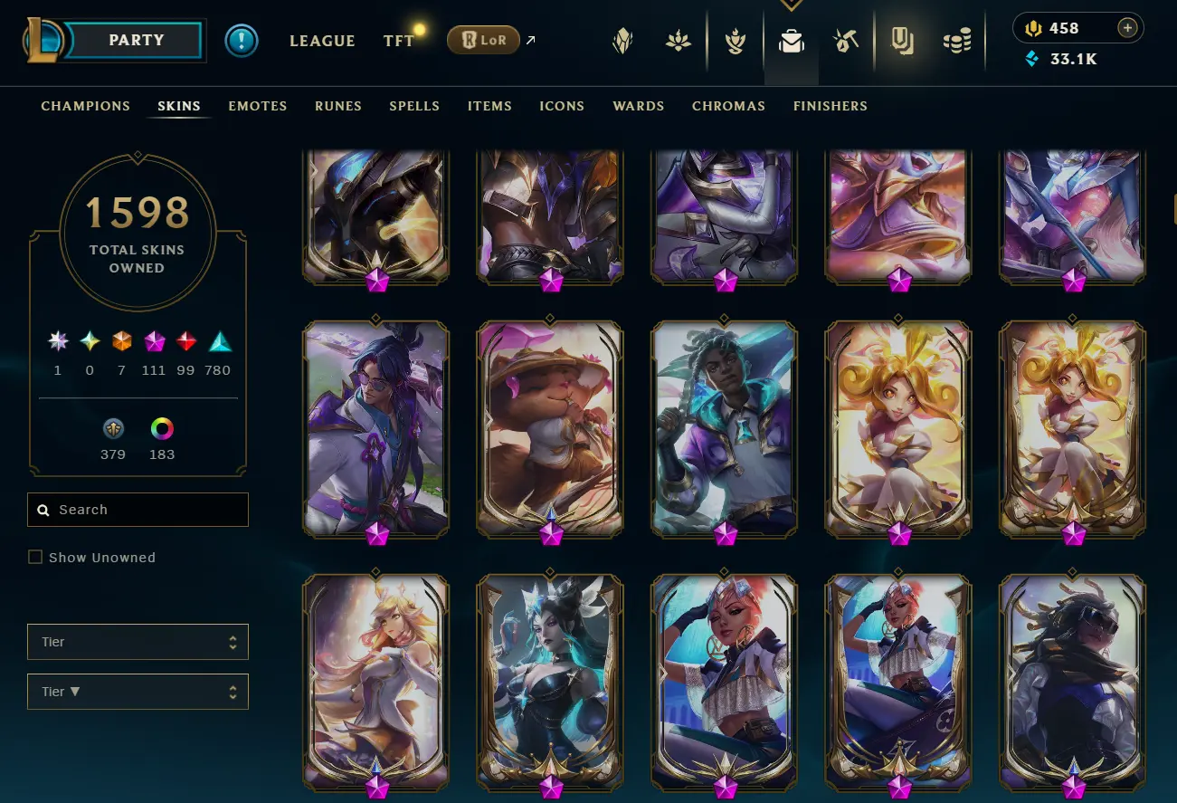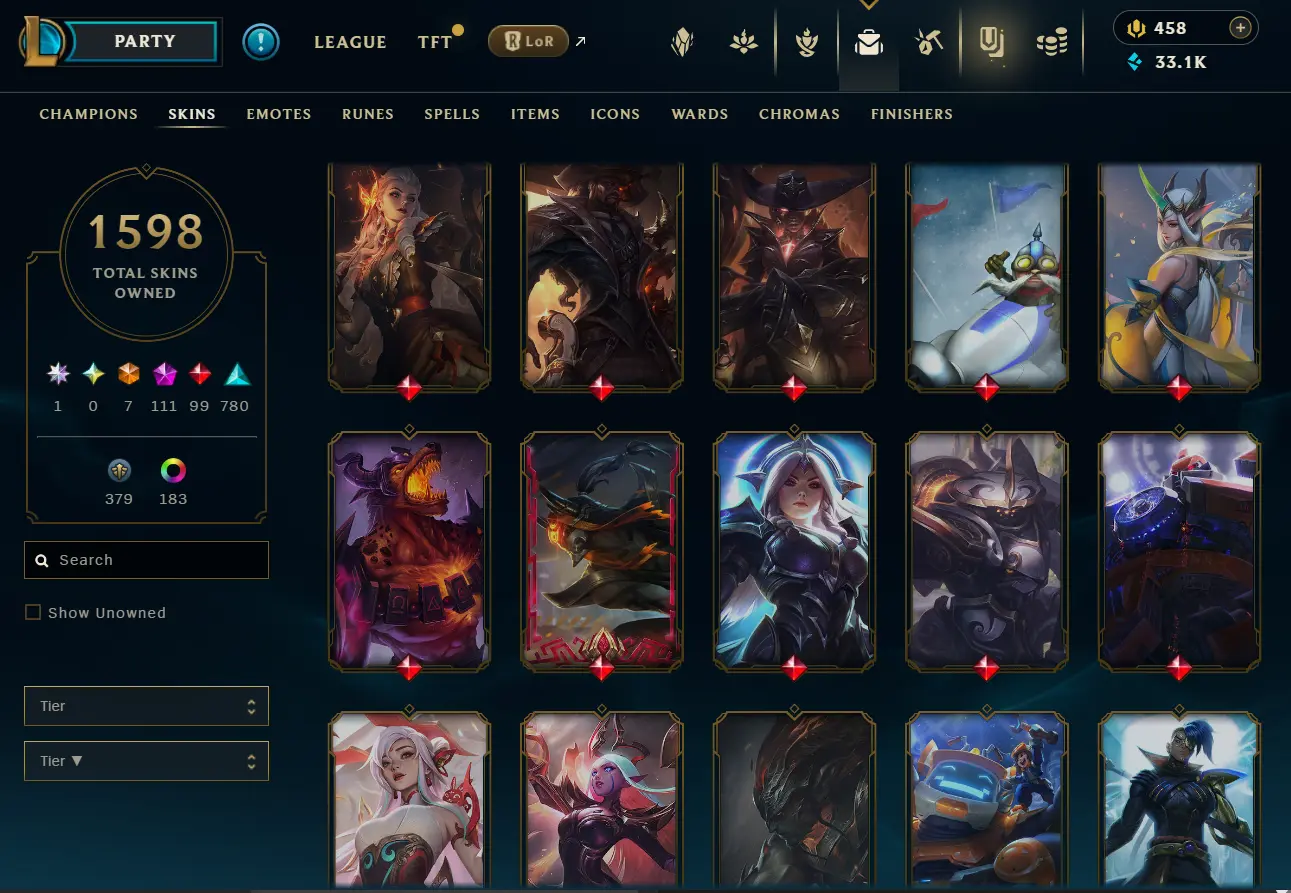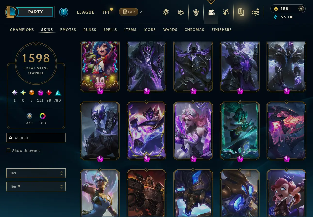 [NA] 1597 skins~ Black Alistar + Risen Legend Ahri + Almost All Prestige Skins + 2022 skins + 95% in TFT 35 purple pets, 11 purple fields