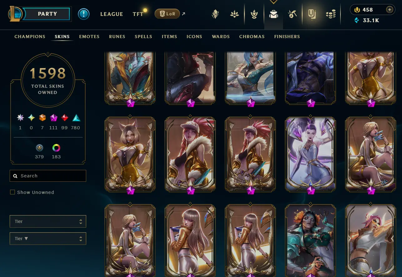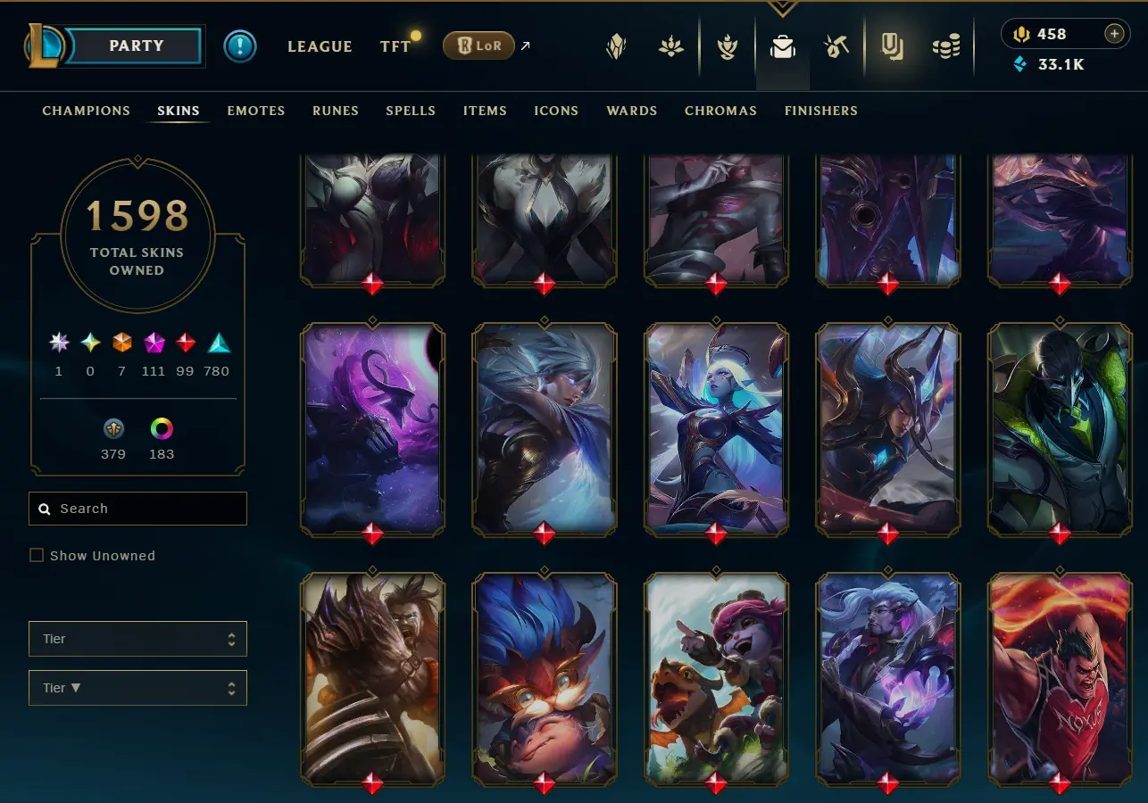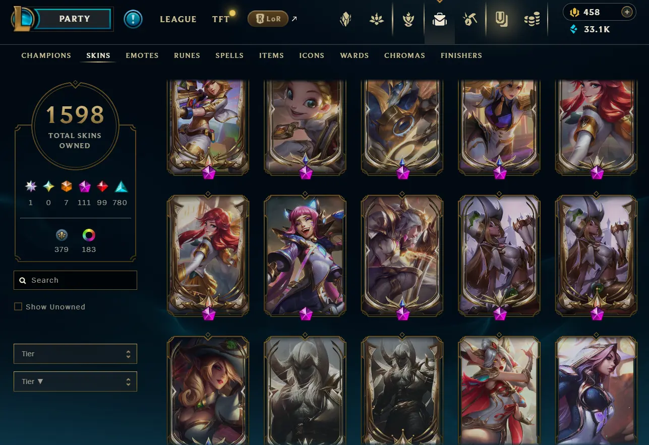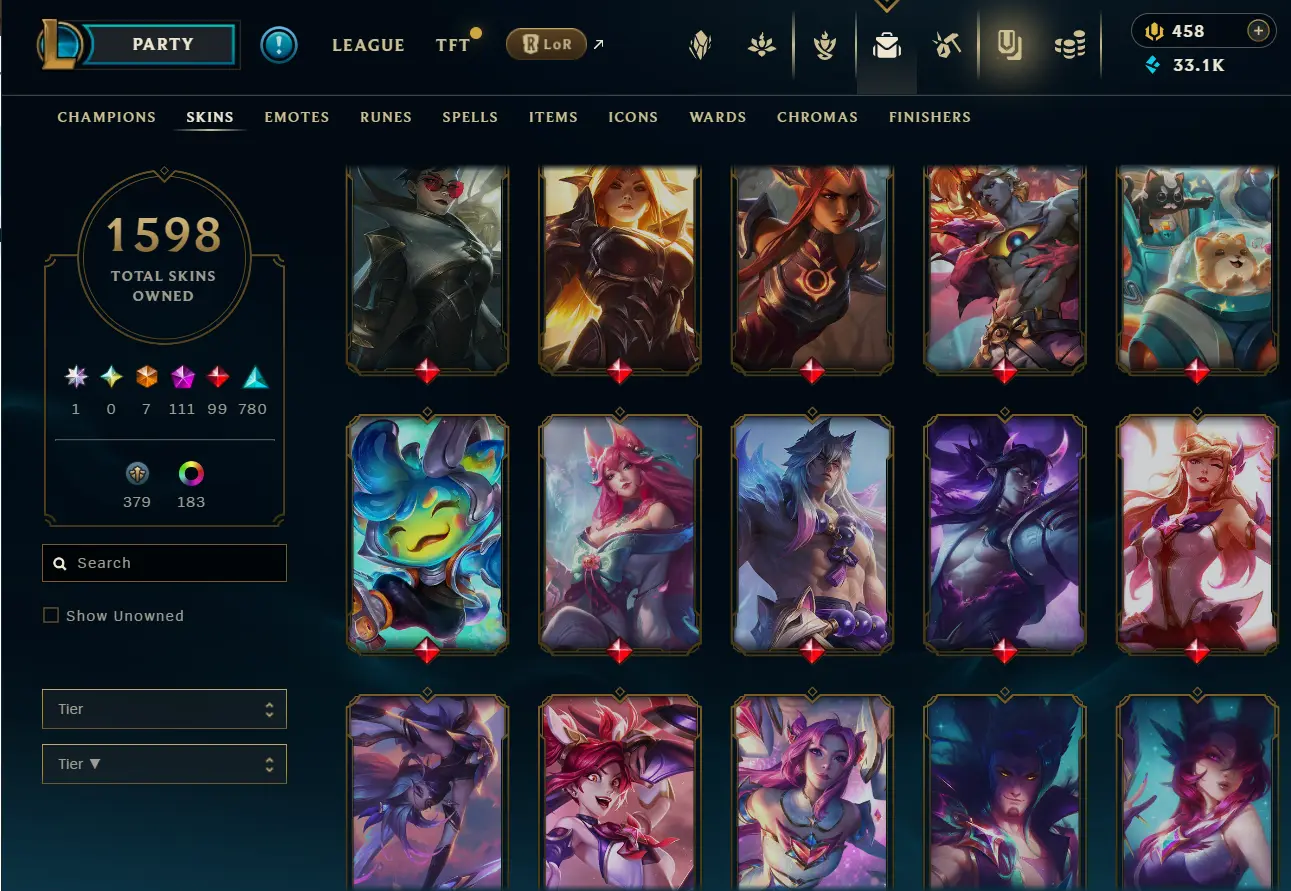 [NA] 1597 skins~ Black Alistar + Risen Legend Ahri + Almost All Prestige Skins + 2022 skins + 95% in TFT 35 purple pets, 11 purple fields