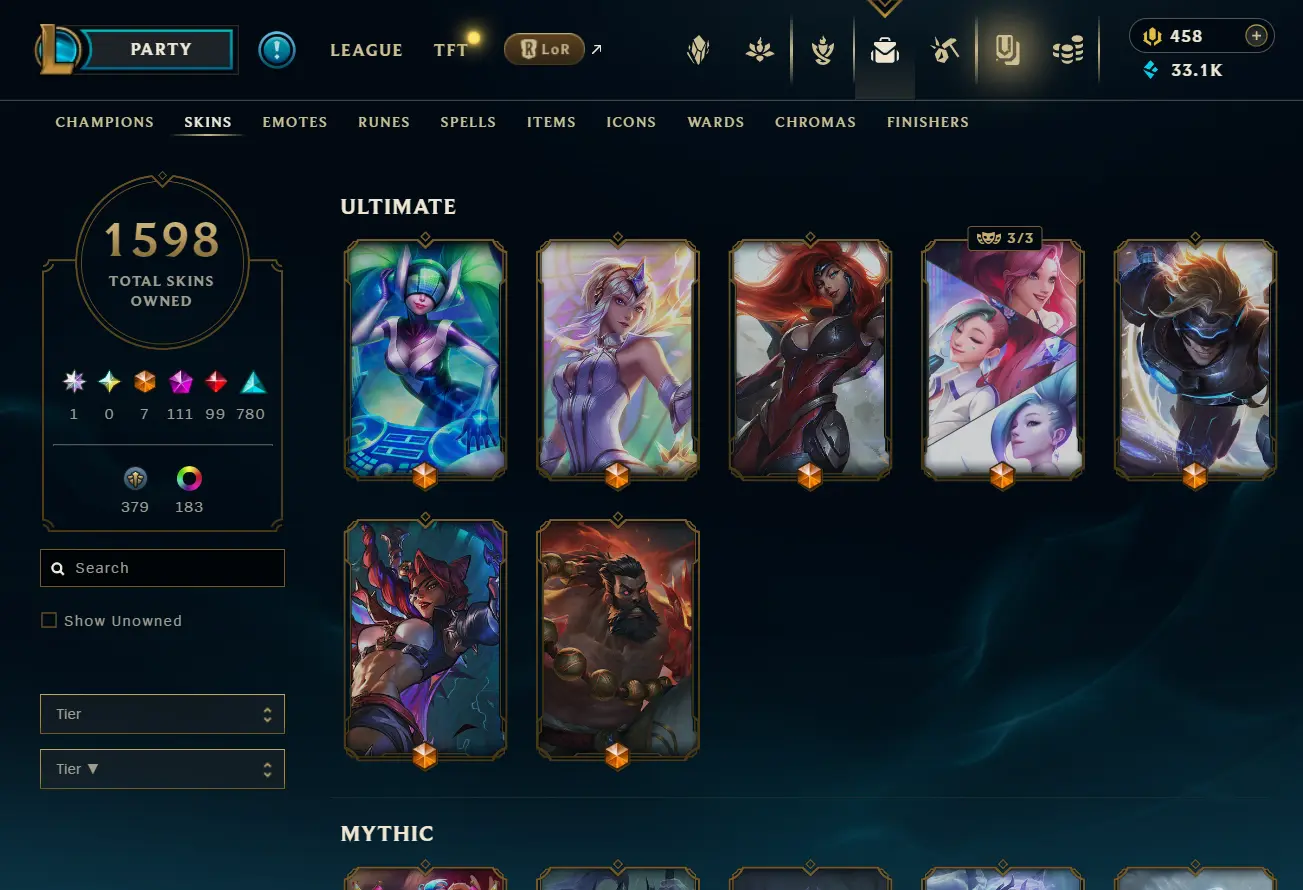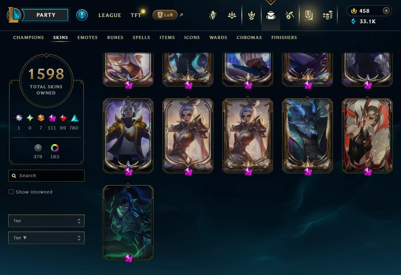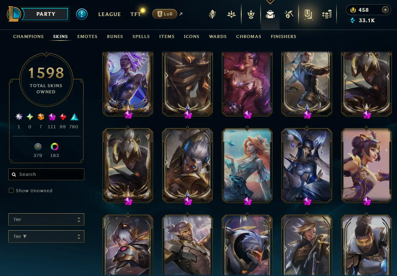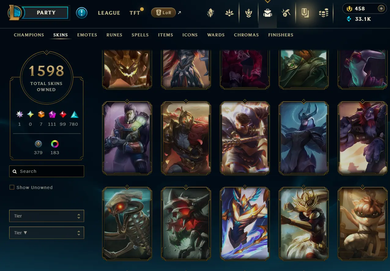 [NA] 1597 skins~ Black Alistar + Risen Legend Ahri + Almost All Prestige Skins + 2022 skins + 95% in TFT 35 purple pets, 11 purple fields