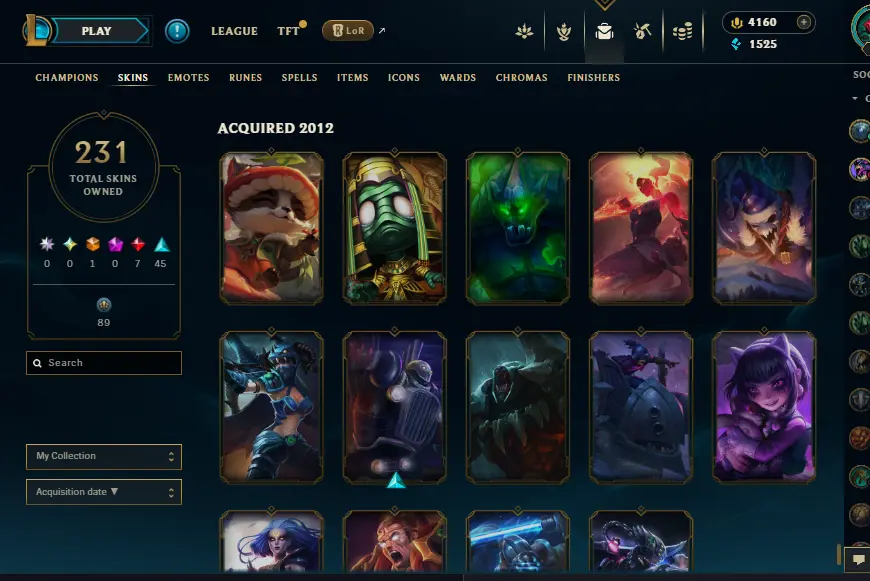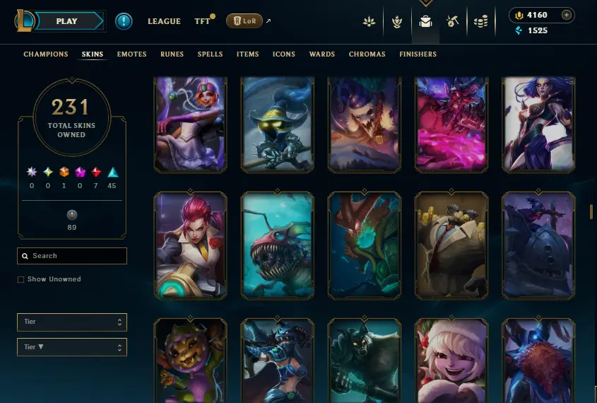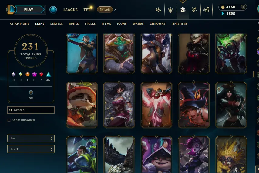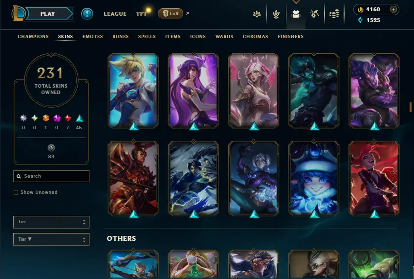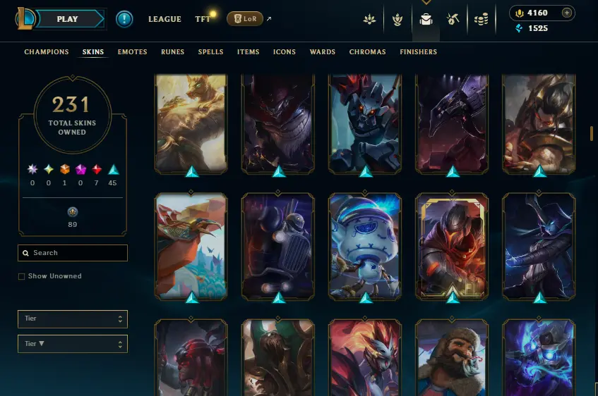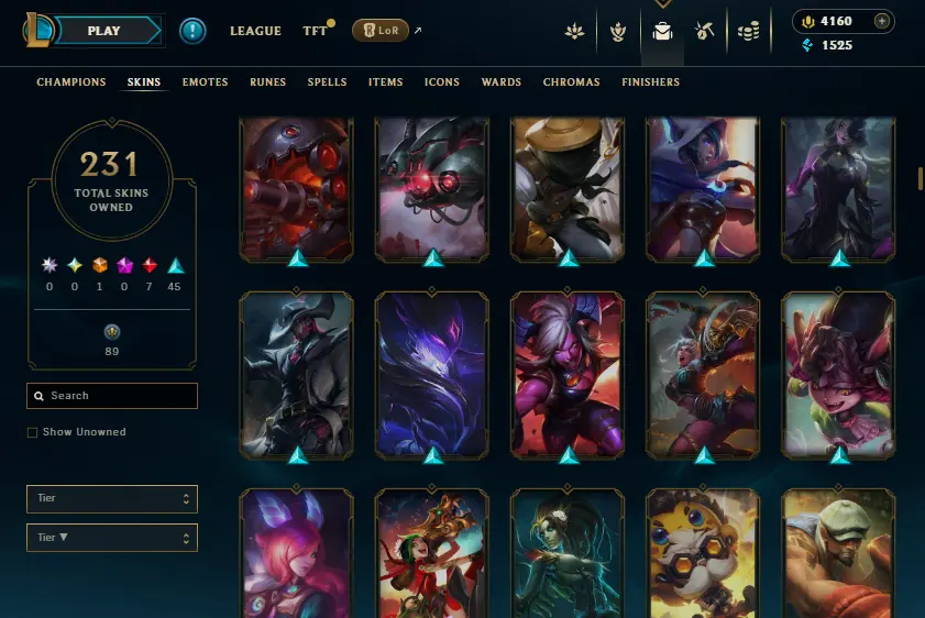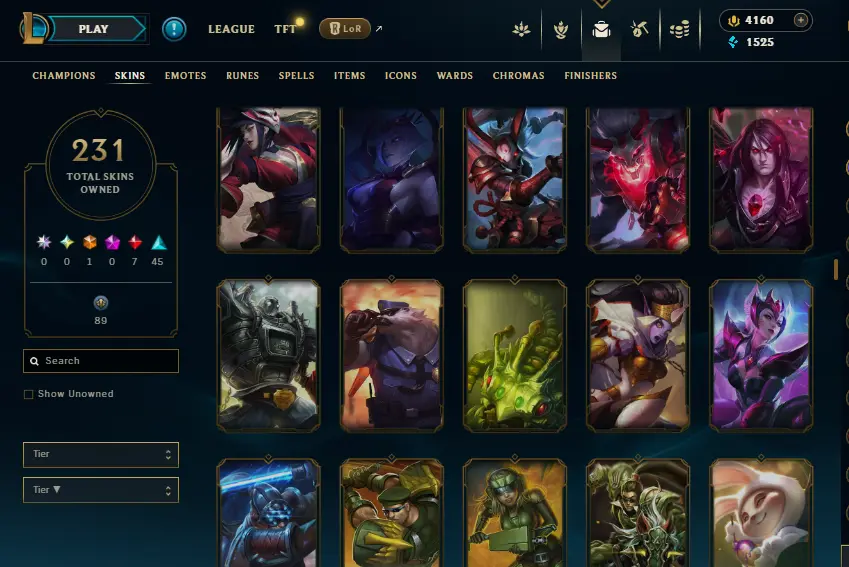 🌍 [NA] | 🎖️ Level 39 | ❌ Unranked | 🎨 231 Skins | 💰 1,525 BE | 💎 4,160 RP | 🏅 Honor Level 3 | 🧙♂️ 137 Champs