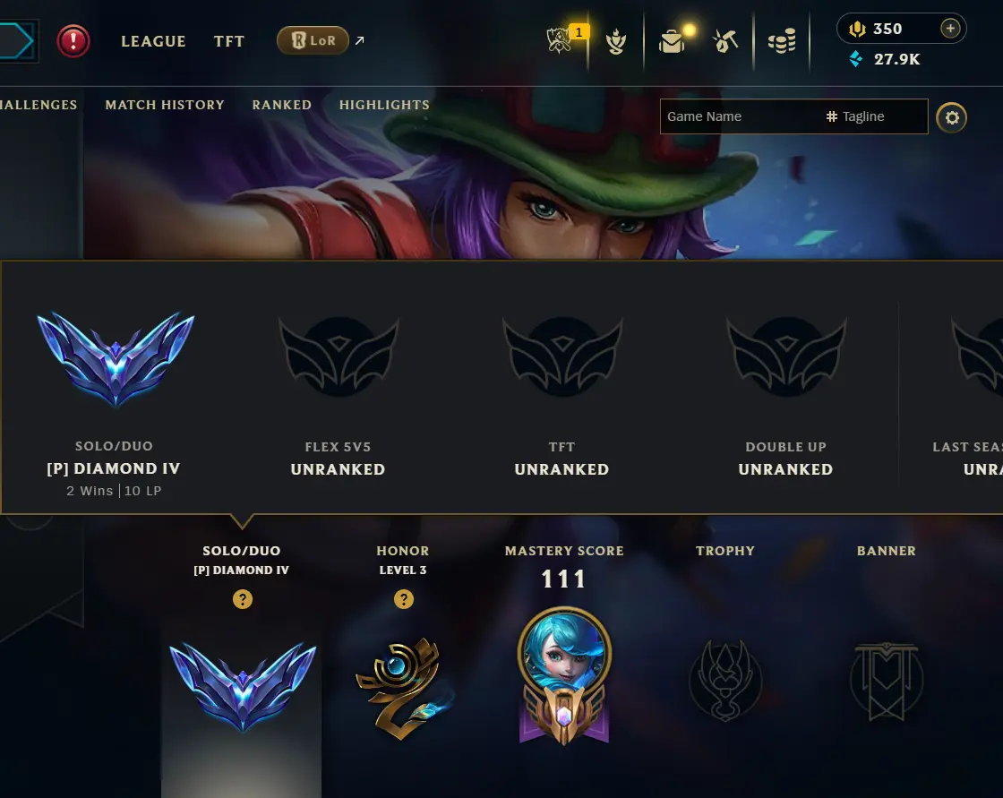 [ 🔥NA S15 SPLIT 3 ] DIAMOND 4 [10LP] ✅️ HANDLEVELED✅️100%WR✅️(2W0L) ✅️JG Main ✅️ Flash: F✅️BE: 30,000✅️ Honor 3✅️ CHANGEABLE RIOT ID
