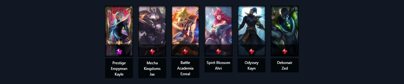 UnRanked┃30 skins┃60 Champs┃(1 Prestige) Prestige Empyrean Kayle Odyssey Kayn Spirit Blossom Ahri Battle Academia Ezreal Mecha Kingdoms Jax Debonair Zed Three Honors Shen