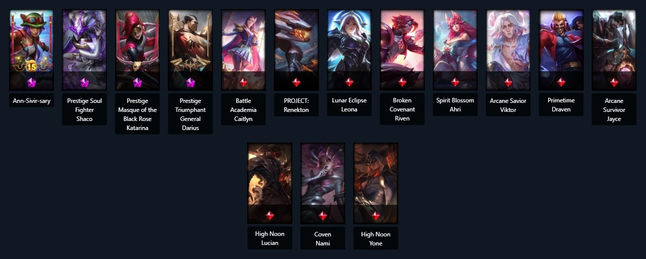 UnRanked┃83 skins┃171 Champs┃(4 Mythic) Arcane Survivor Jayce Prestige Soul Fighter Shaco Prestige Triumphant General Darius Battle Academia Caitlyn Arcane Savior Viktor PROJECT: Renekton High Noon Lucian