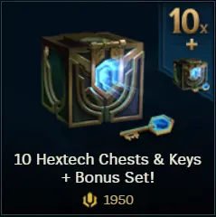 宝箱: 通过我们的海克斯科技宝箱解锁随机奖励的激动人心体验。每个宝箱都可能包含英雄碎片、皮肤碎片、表情、守卫皮肤,甚至是稀有的宝石。这是一个扩展您的收藏并有可能发现您可能从未考虑过的物品的绝佳方式。