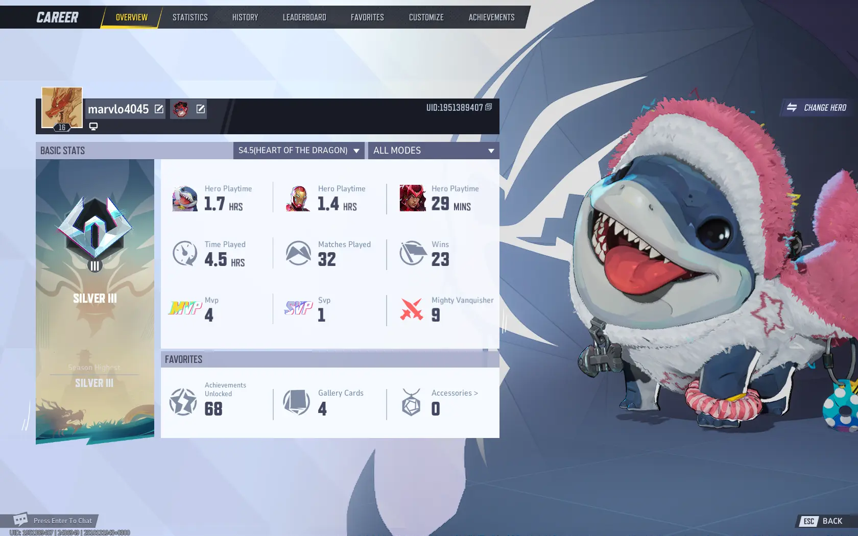 Season 4 🌀 Silver 3 Rank 💠 Level 16 🎖 1350 Units 🎫 10040 Chrono Tokens 🔮 Global All Regions 🌐 Steam Full Access