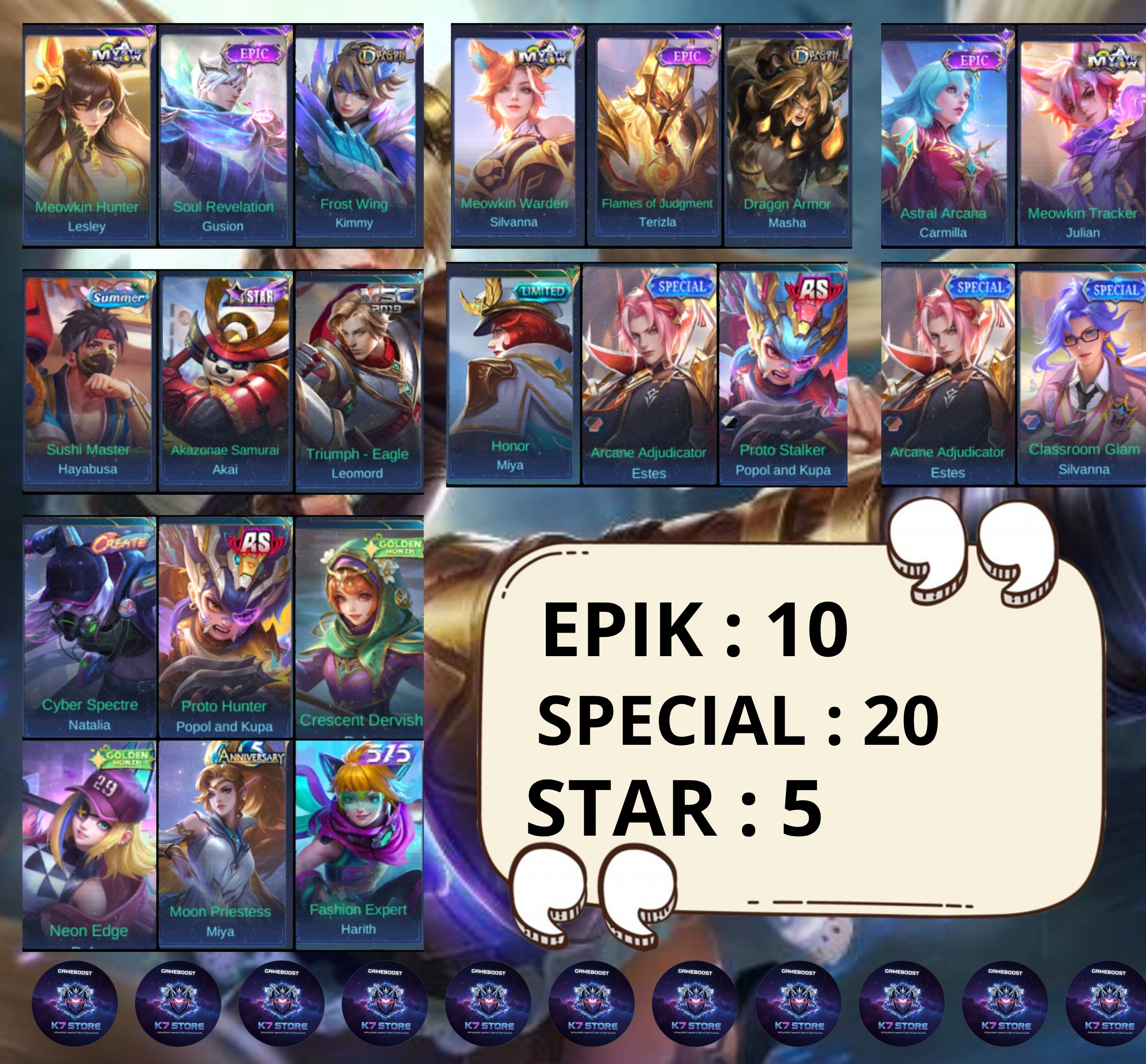 BEST MEGA DEAL✨HERO 102✨SKIN 169✨NATA CC✨ VALE NARUTO✨BADANG SEIYA✨DRAGON 3✨LEO MSC✨FRANCO BLAZING ✨ROGER CYBORG✨SAFE ACC✨INSTAN DELIVERY