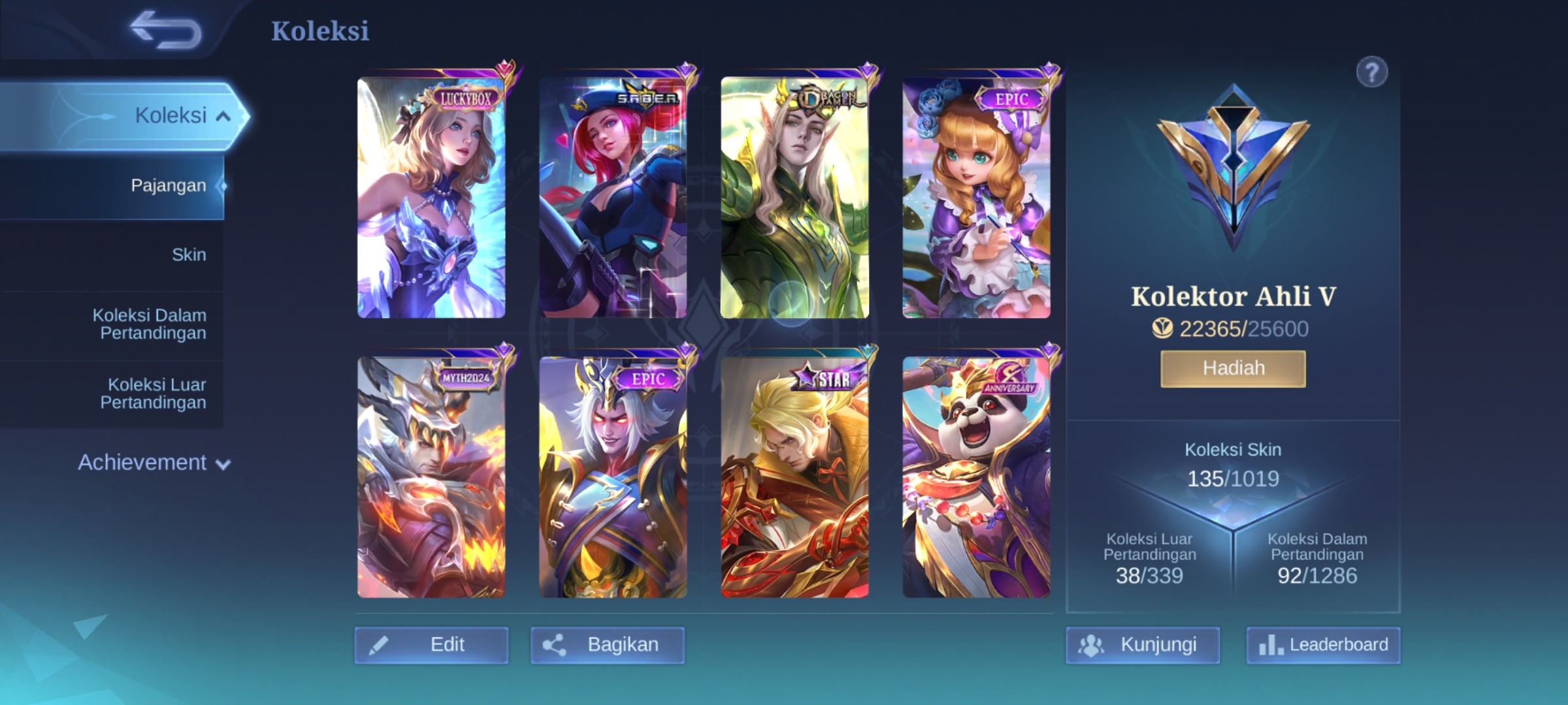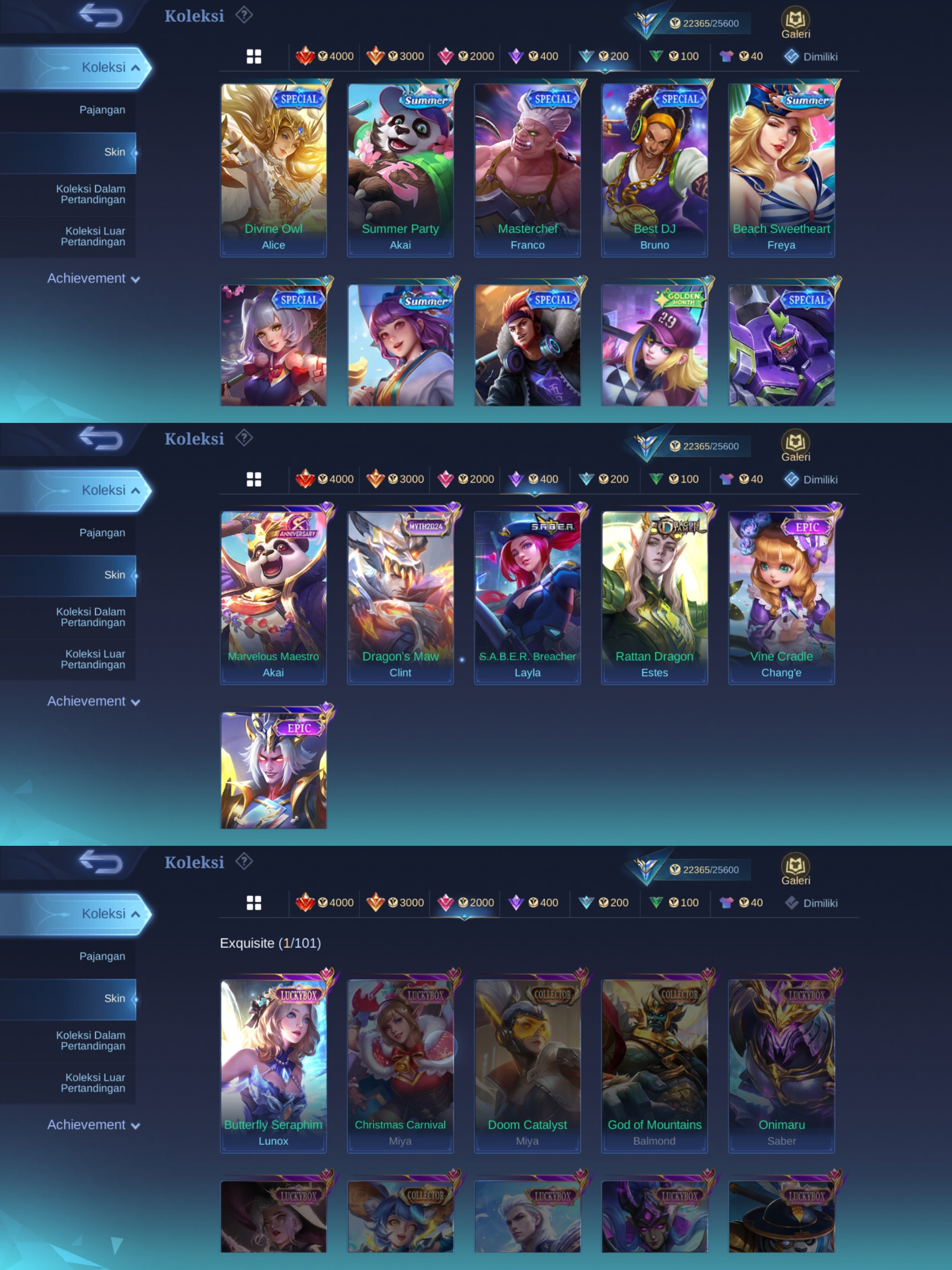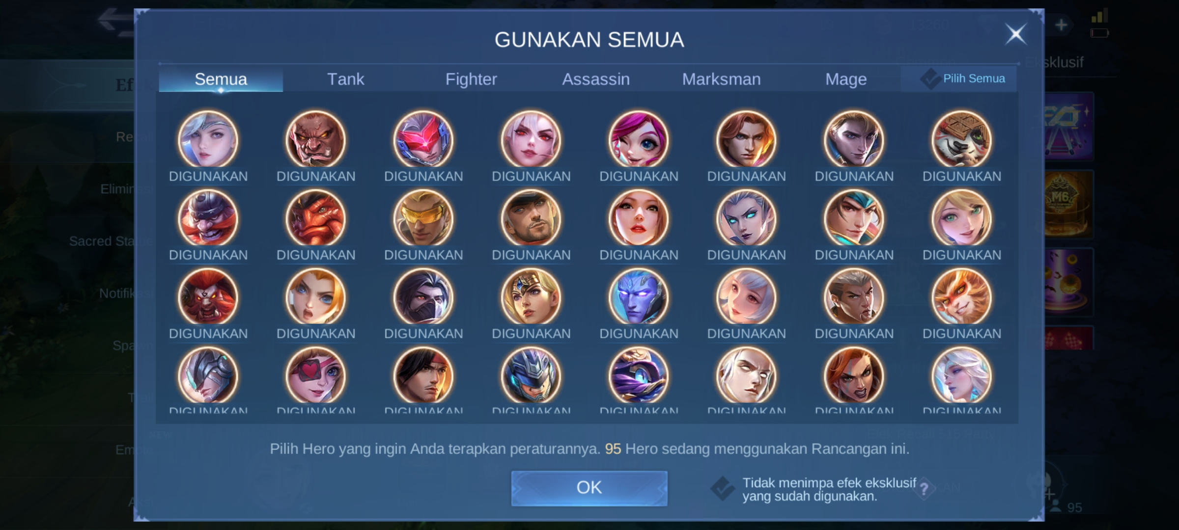 BEST MEGA DEAL✨HERO 95✨SKIN 135✨EMBLEM MAX ✨LUNOK SERAPHINE✨CLINT MYTH✨LAYLA S.A.B.E.R✨ESTES DRAGON✨CHANGE EPIK & KHUFRA✨SUMER 3✨SPECIAL 17✨SAFE ACC✨