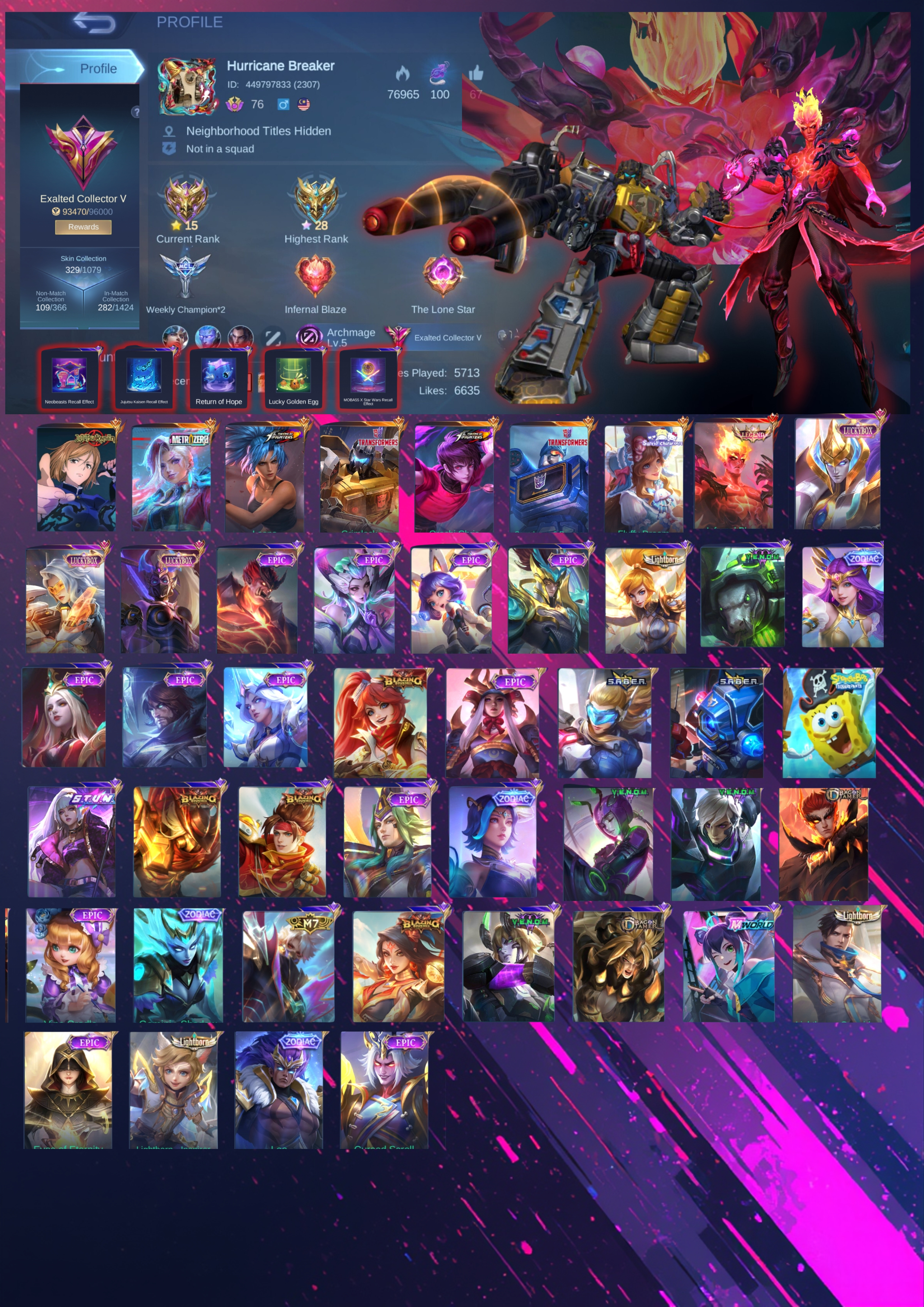 [Exalted Collector 5] Legend Infernal Blaze | 7 Grand Skins | Transformers x JJK | All Heroes | Max Emblem | Nobara | Rare Effects | Android-iOS