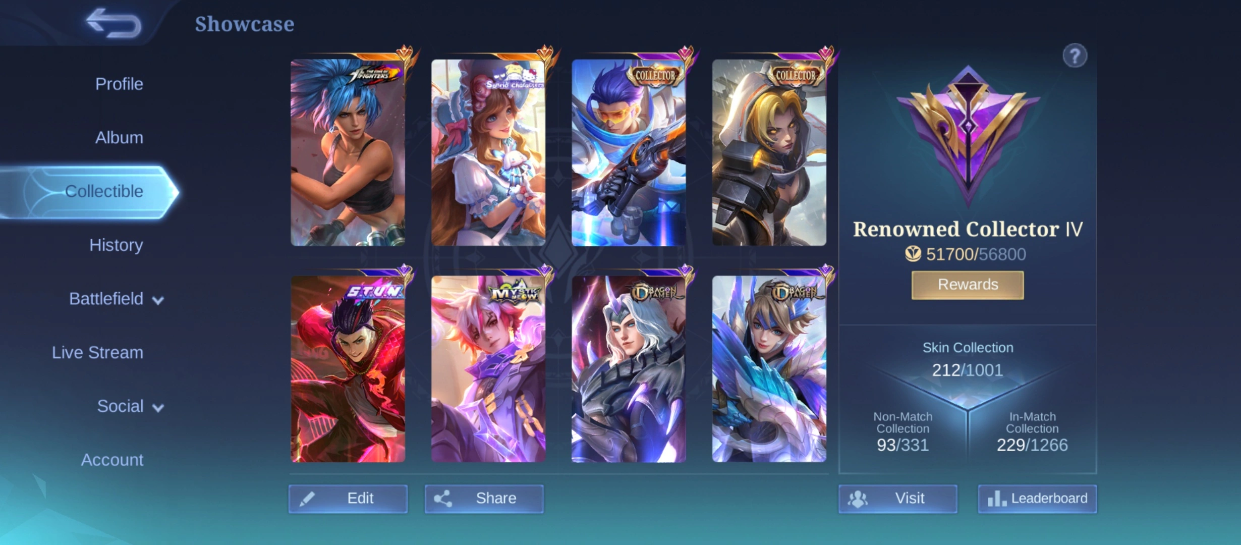 GG793|Lvl 85|RENOWNED CC 4|212 SKIN|ALL EMBLEM MAX|CRAWLERS EPIC RECALL|56% HIGH WR|FLORYN SANRIO|2 COLLECTOR|GRANGER COLLECTOR|CHOU STUN|9 EPIC