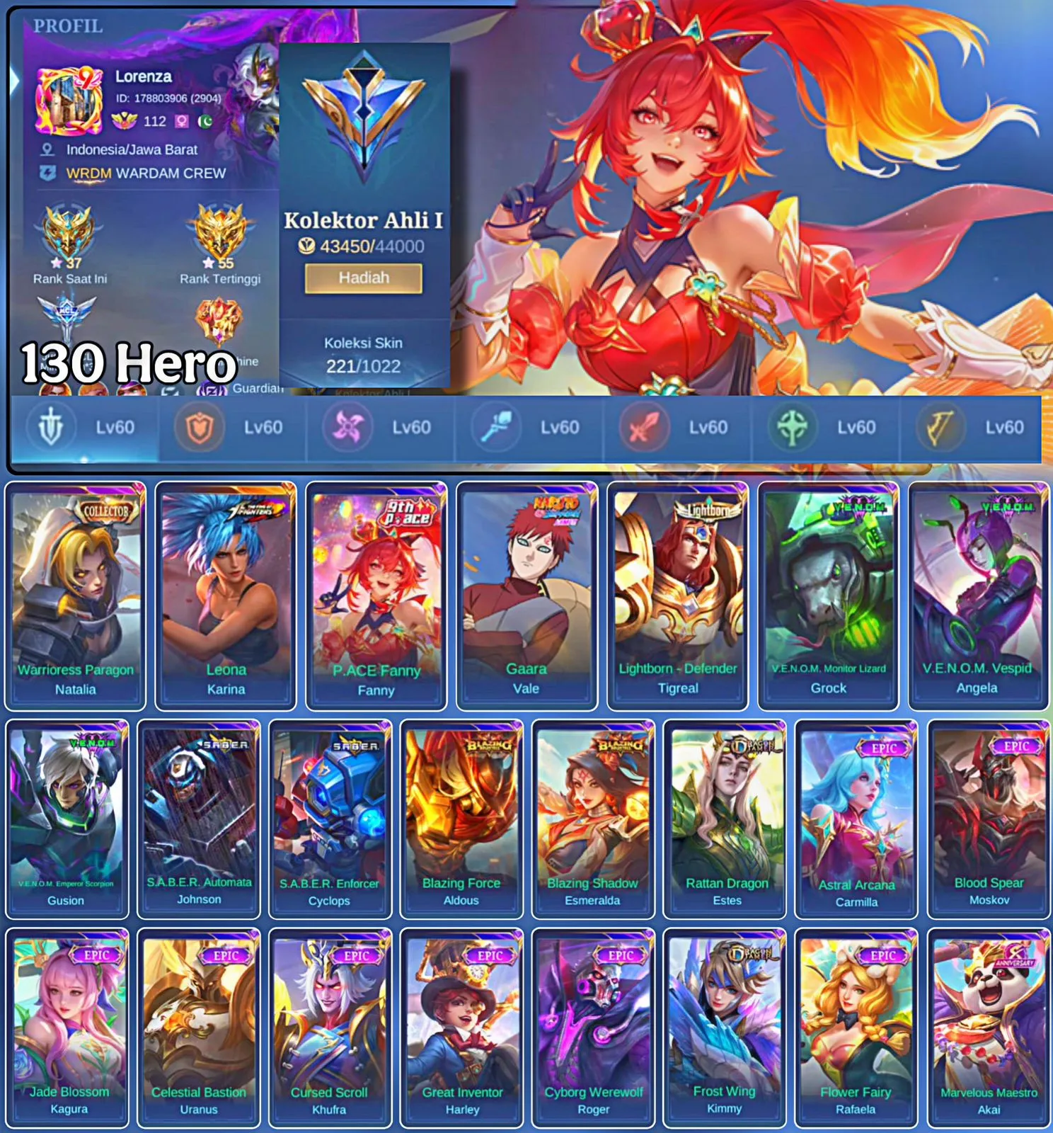 HERO 130 SKIN 221| EMBLEM ALL MAX | COLECTOR NATALIA | PACE FANNY | EPIC KHUFRA | EPIC ROGER | HERO GOOD | SKIN GOOD | INSTAN DELIVERY