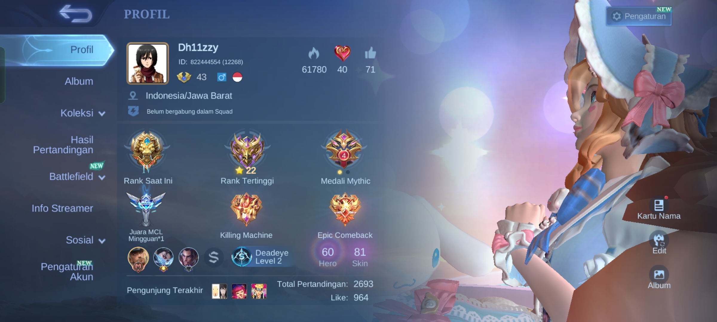 HERO 60 SKIN 81 | EMBLEM GOOD | EPIC MOSKOV | LESLEY SABER | STAR LESLEY | HERO GOOD | SKIN GOOD | INSTAN DELIVERY