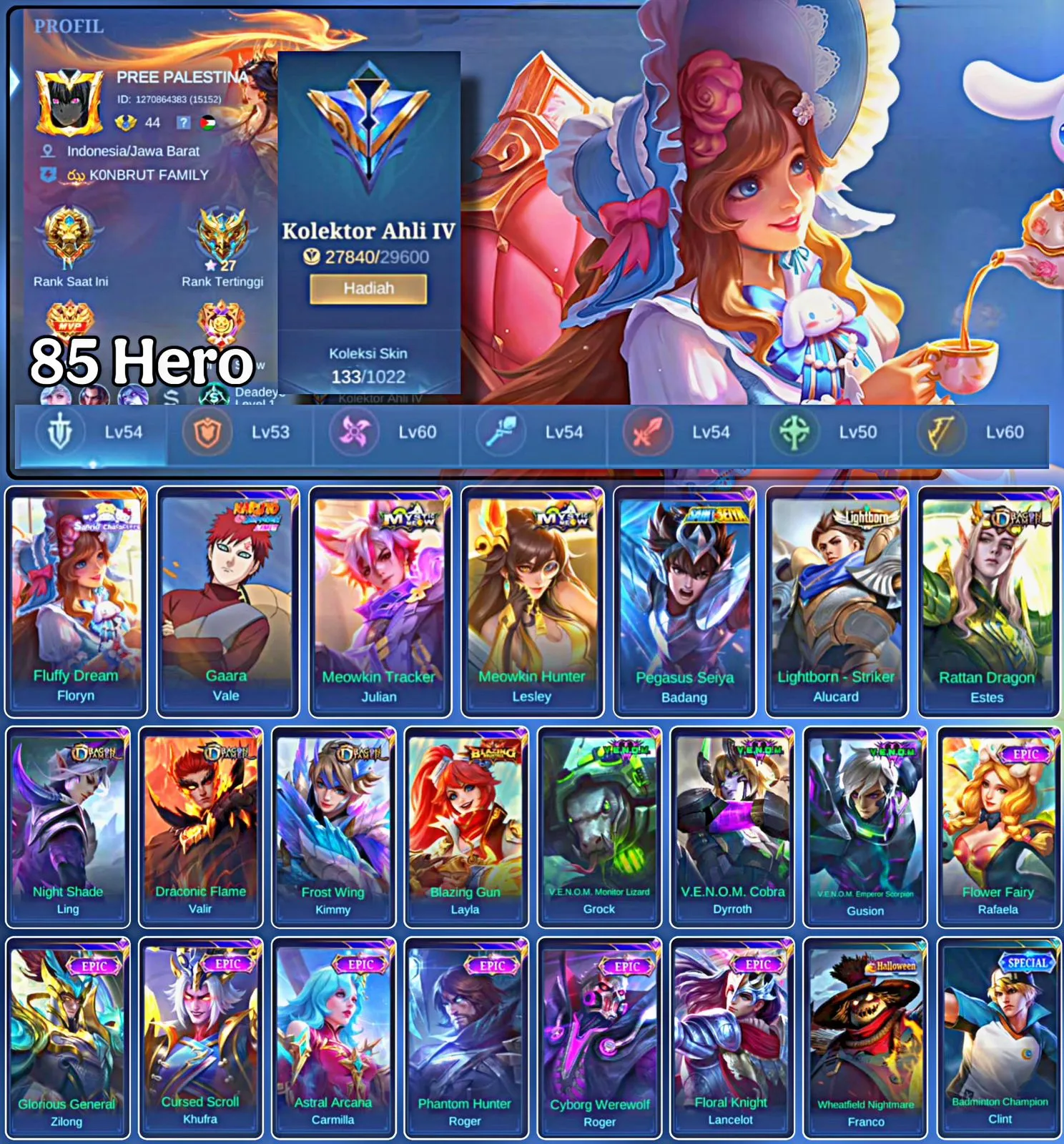 HERO 85 SKIN 133 | EMBLEM GOOD | FLUFFY DREAM | VALE GARA | EPIC ROGER | EPIC KHUFRA | HERO GOOD | SKIN GOOD | INSTAN DELIVERY