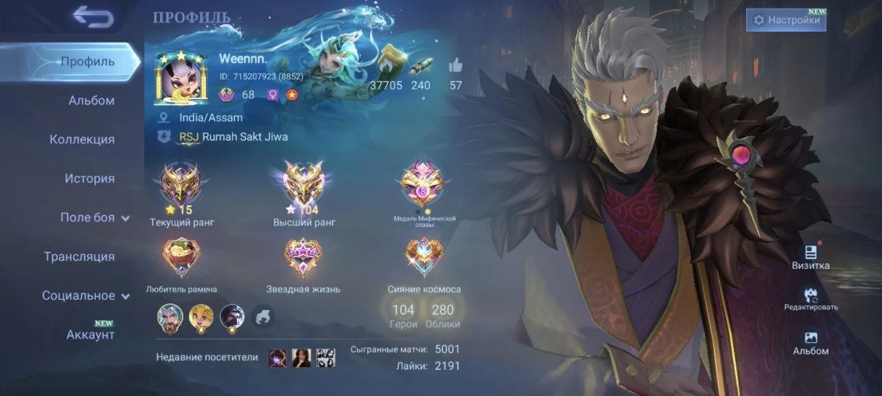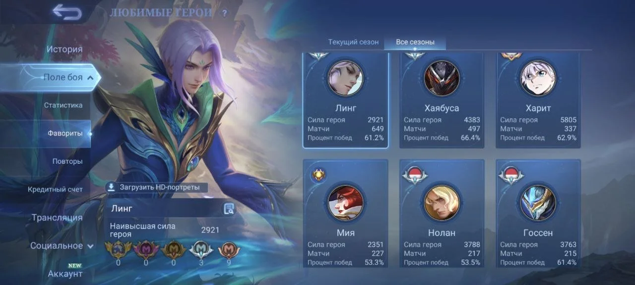 Hurry! Mobile Legends ⸱ Level 68, 280 Skins, 104 Heroes | Epic Rank | 58% Win Rate(#A48531764f)