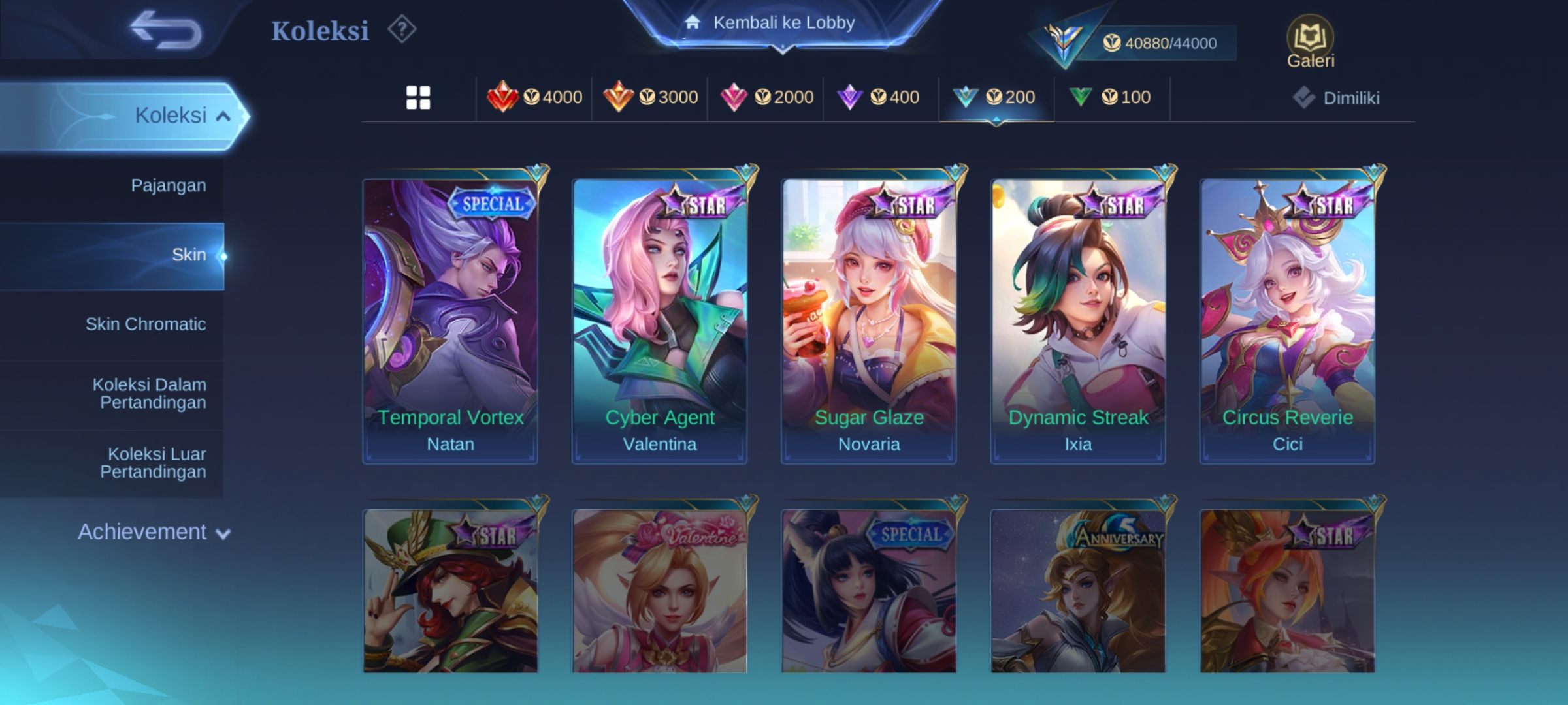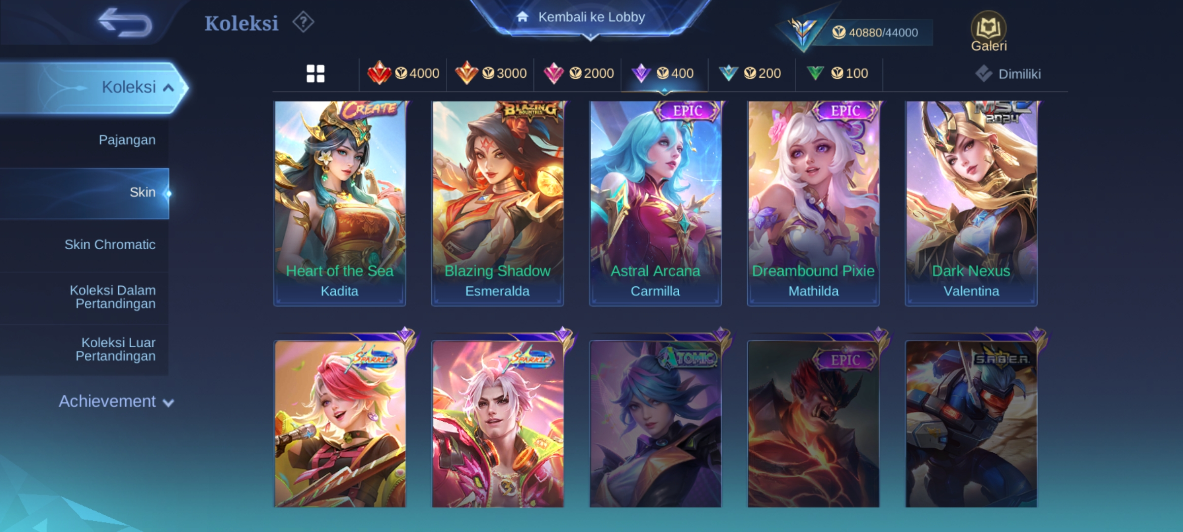 ML-227 Skins 146 [ Legend Lunox ] Clouds Edith / 3 Sparkle / KOF Karina / Collector Natalia / MSC Valentina / Recall Epiclimit Seal Of Anvil