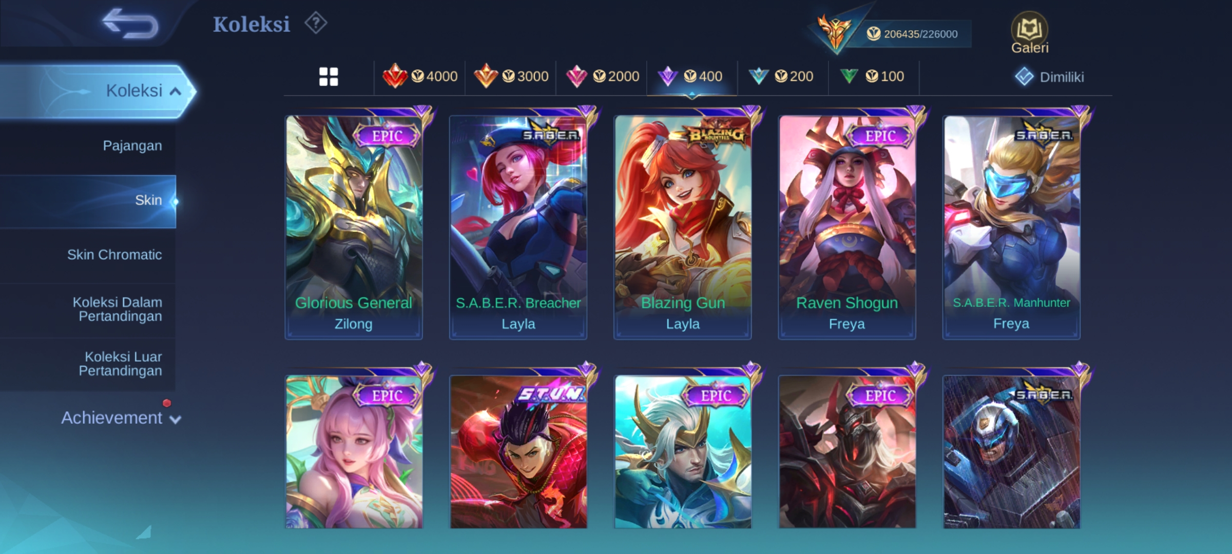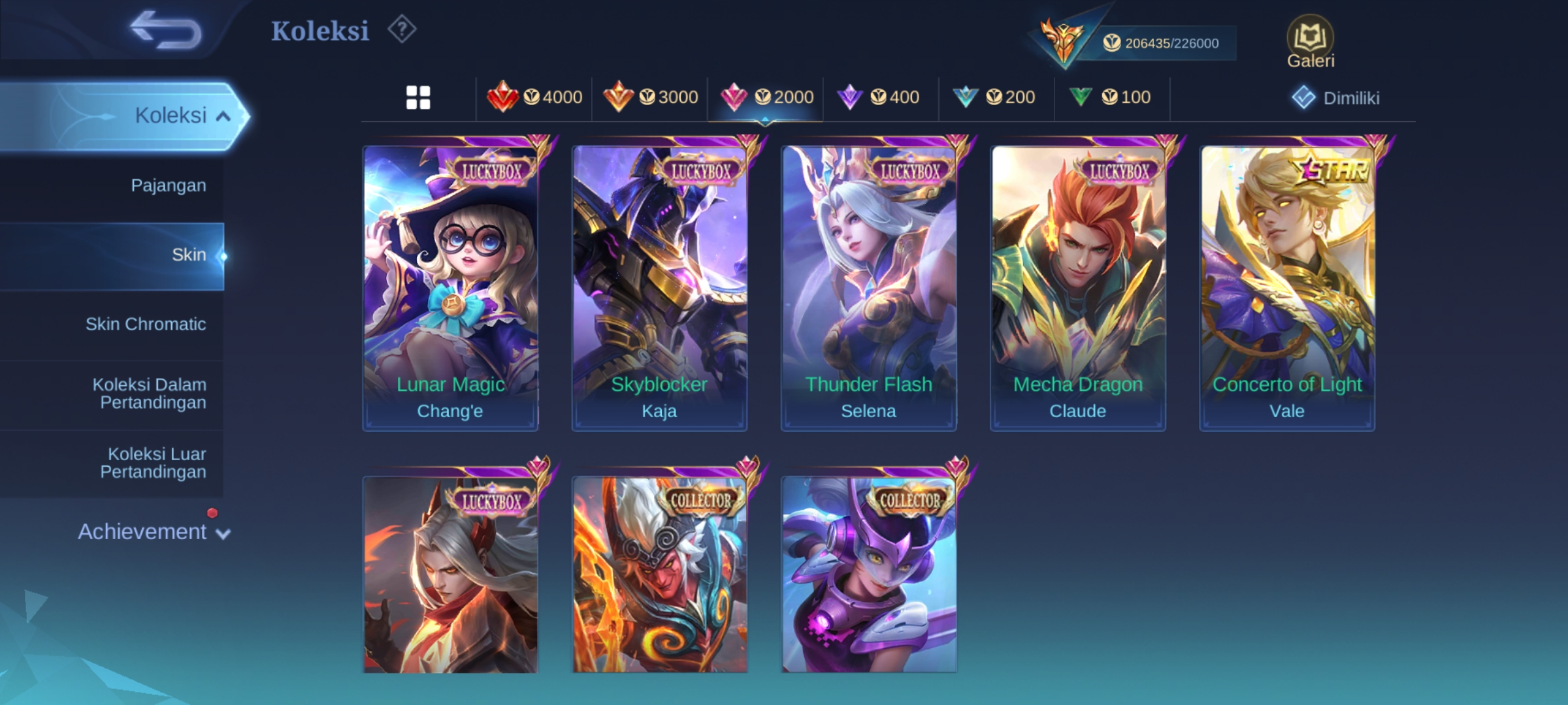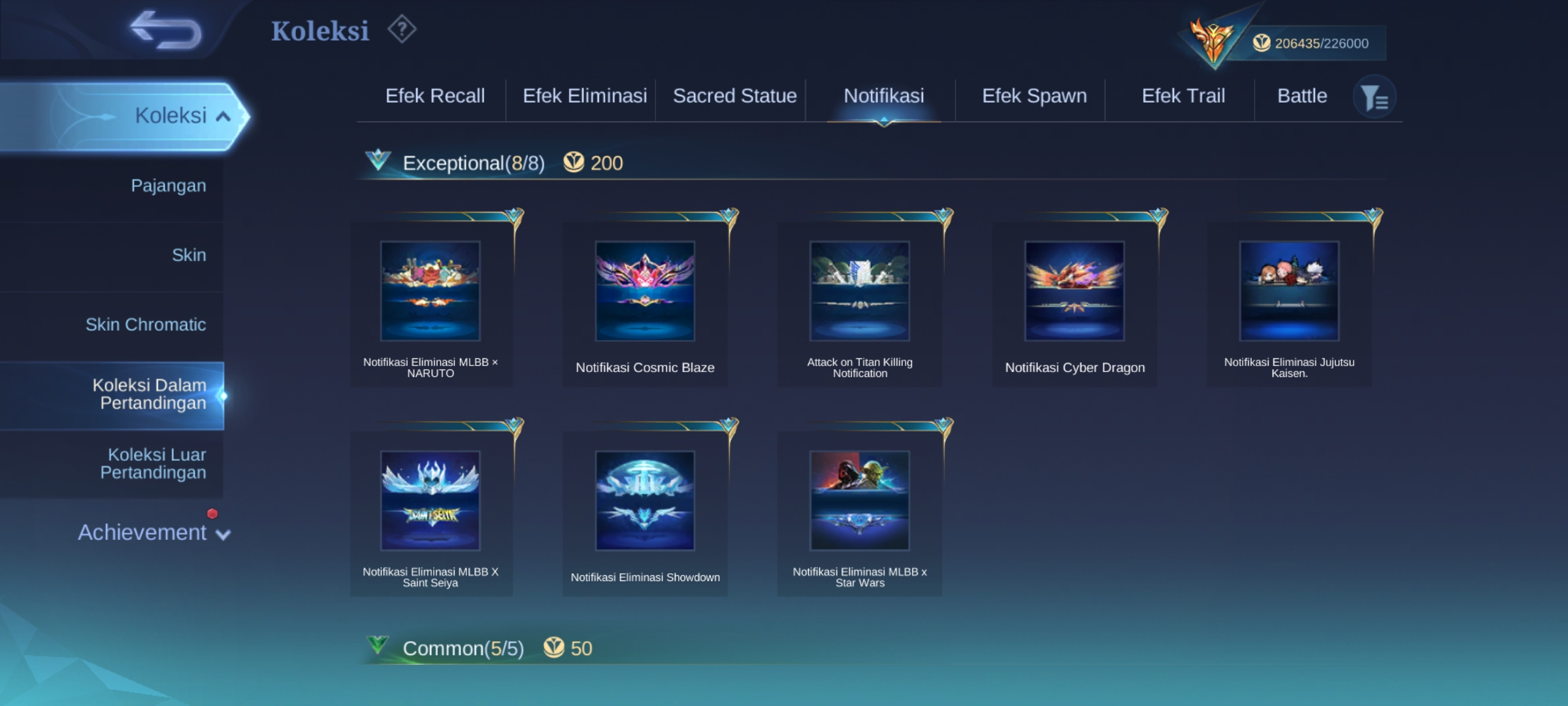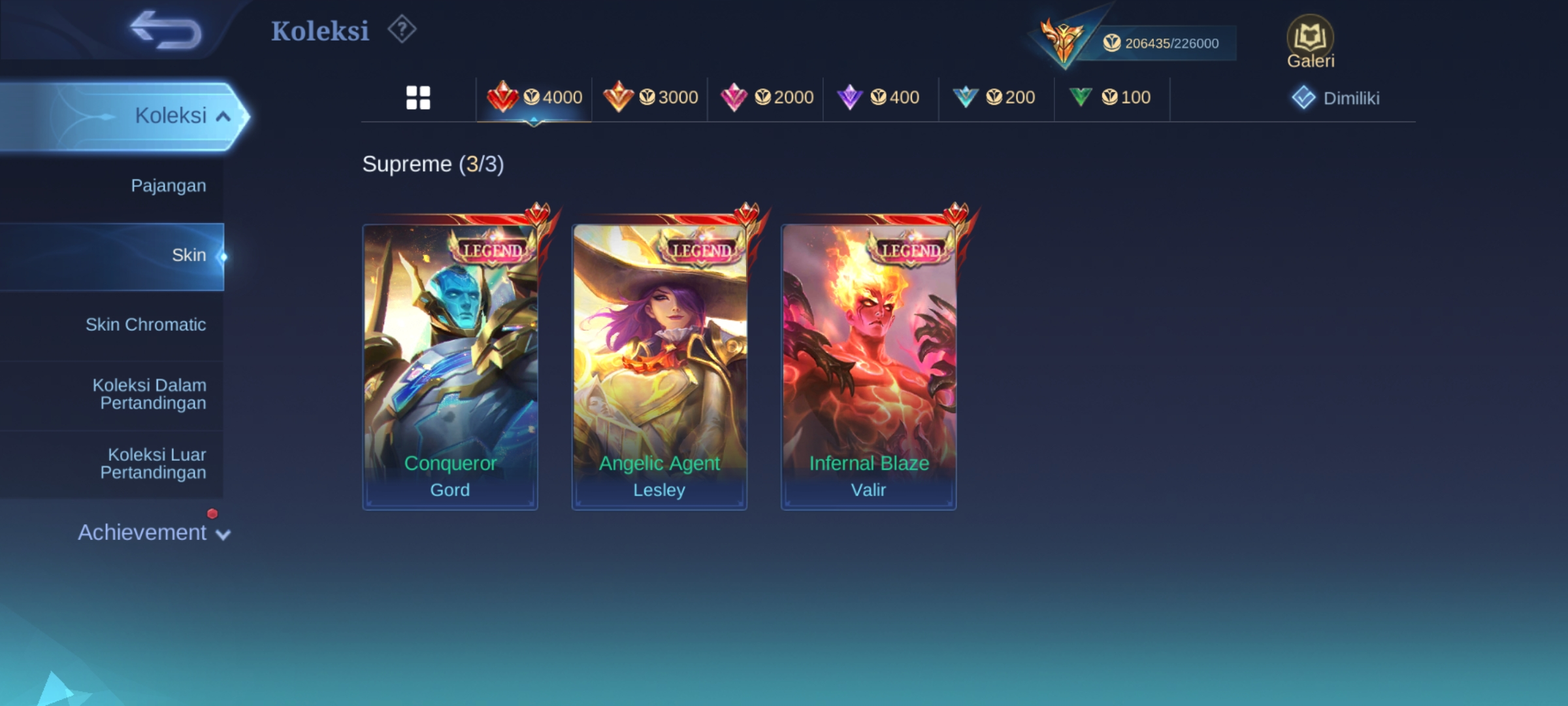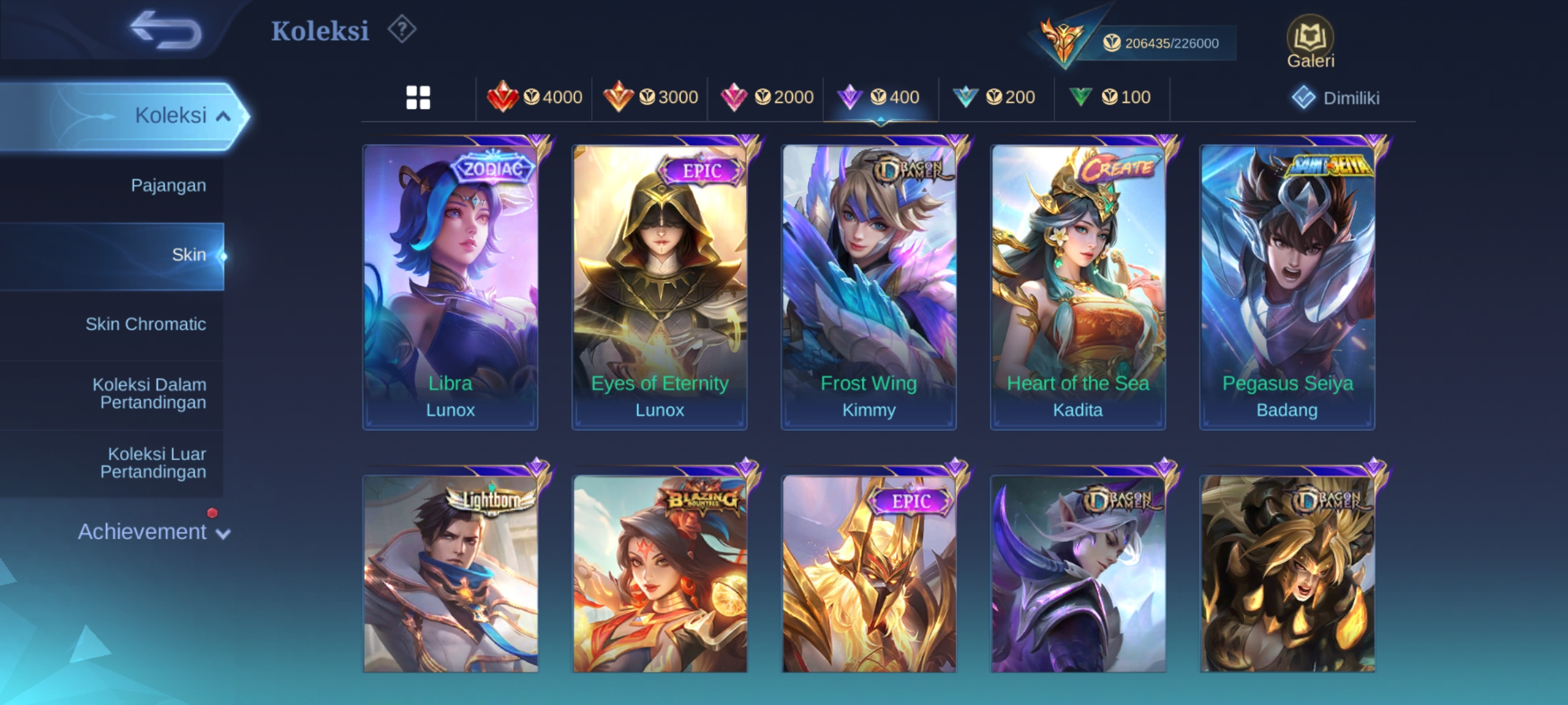 ML-375 Skins 467 [ 3 Legend ] Sasuke Suyou / Jjk Gojo / Saint Seiya Badang / 4 Aspirants / 6 KOF / 2 Kungfu / 3 TF / 3 Collector