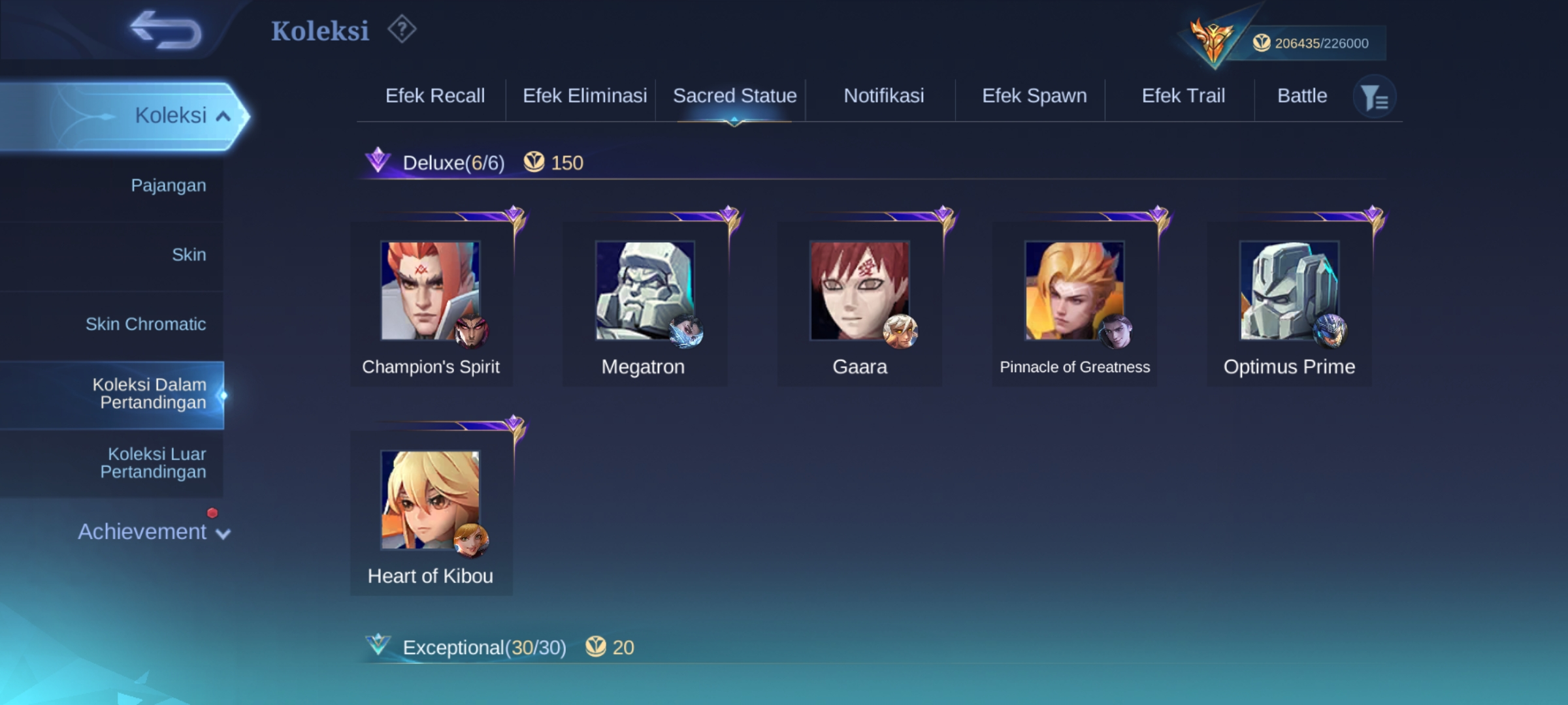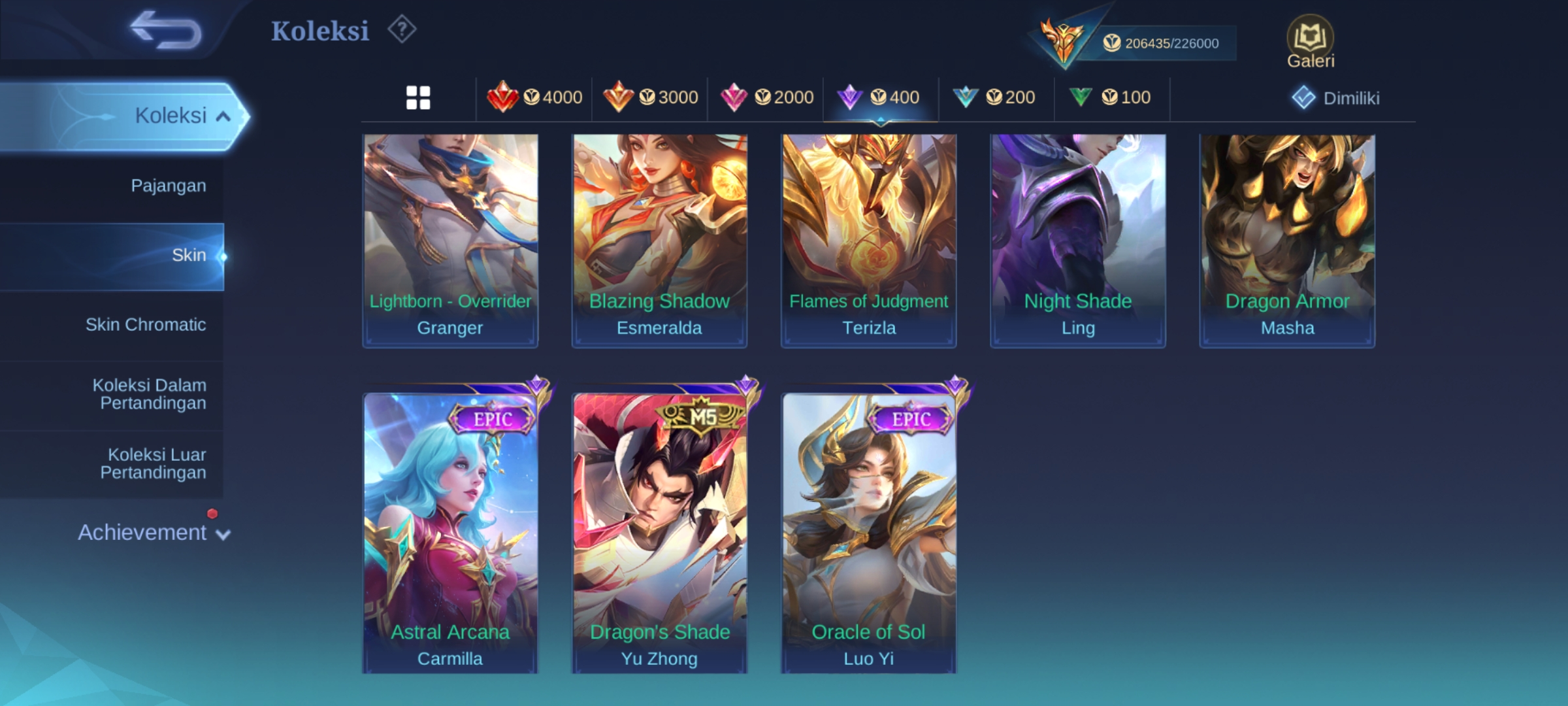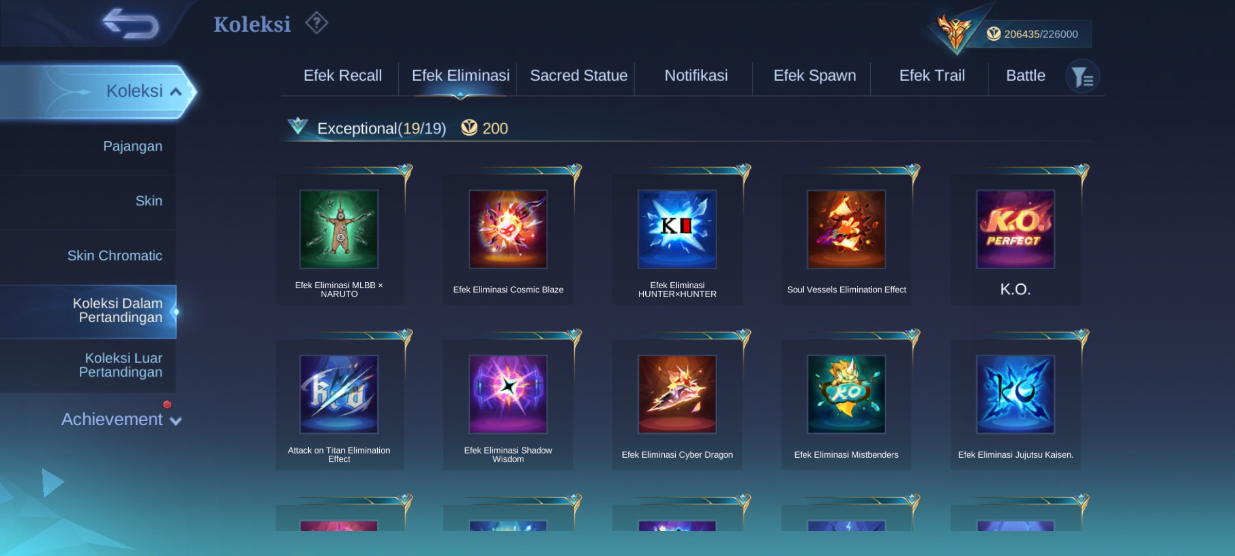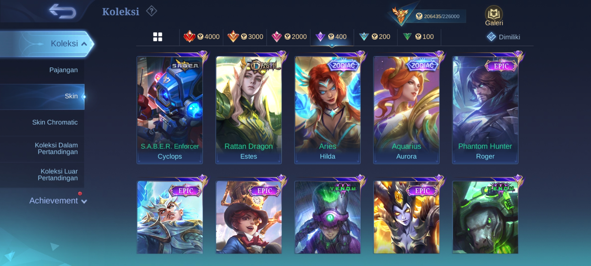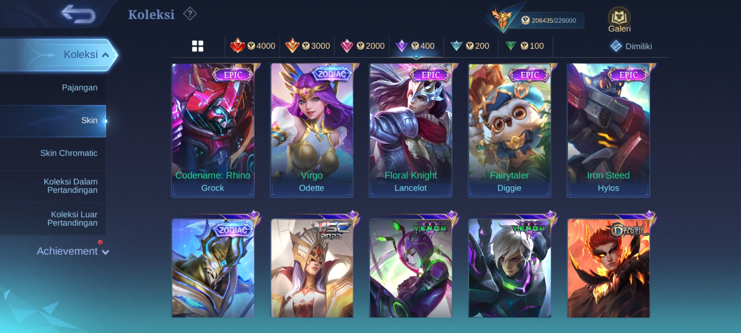 ML-375 Skins 467 [ 3 Legend ] Sasuke Suyou / Jjk Gojo / Saint Seiya Badang / 4 Aspirants / 6 KOF / 2 Kungfu / 3 TF / 3 Collector