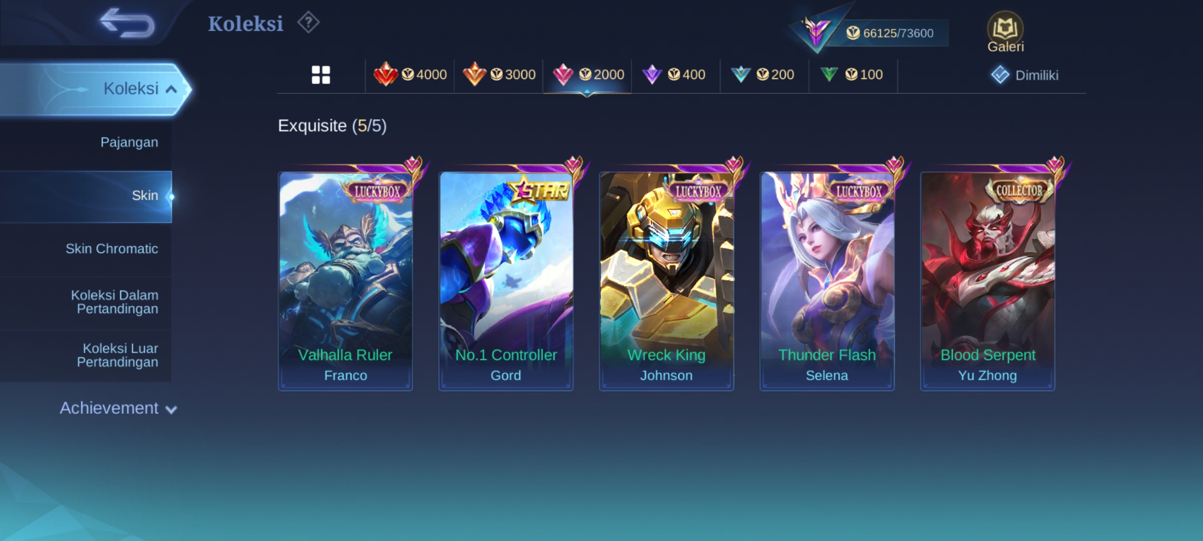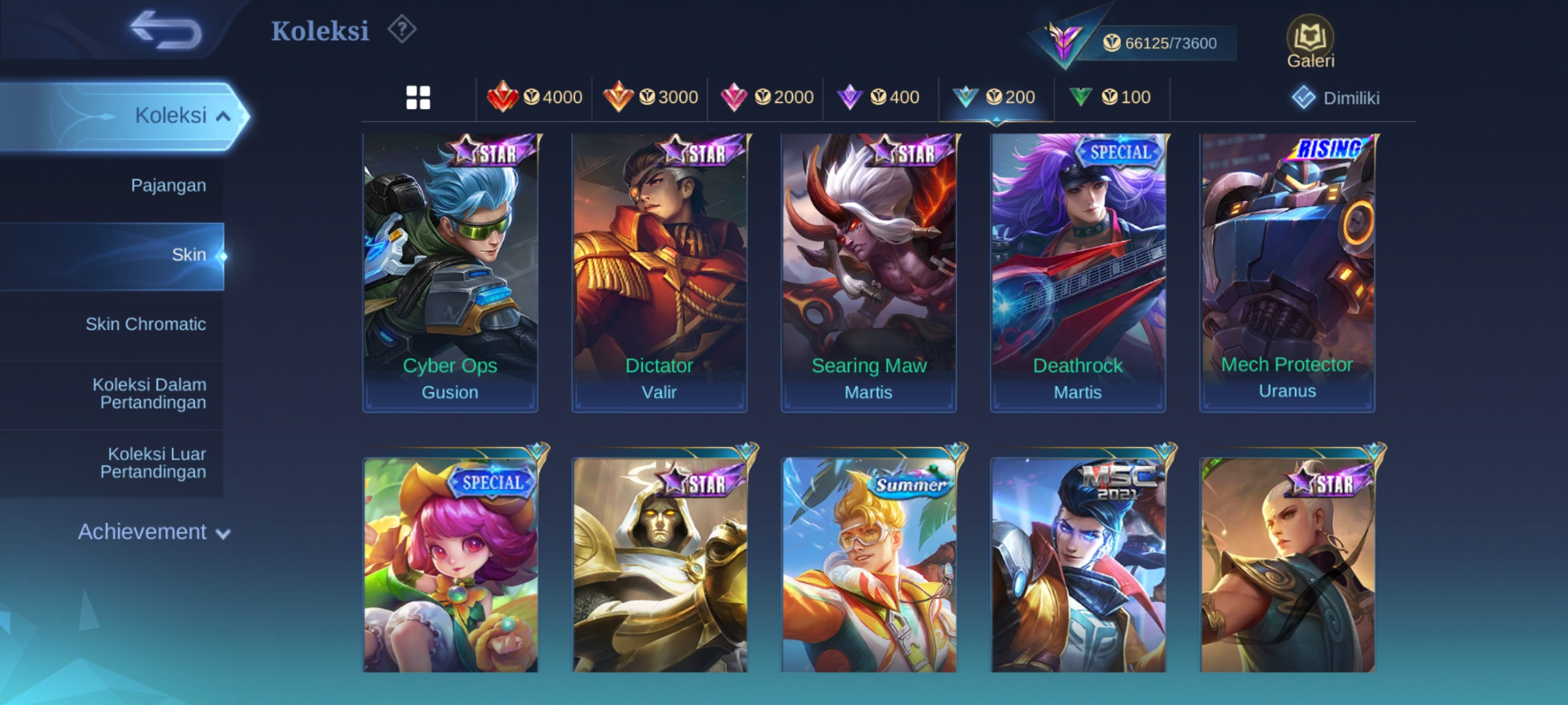 ML-421 Skins 275 [ Magic Core 118 ] Prime Beatrix / Collector Yu Zhong / Luckybox Selena x Franco / Zodiac Badang X ZodiacMartis