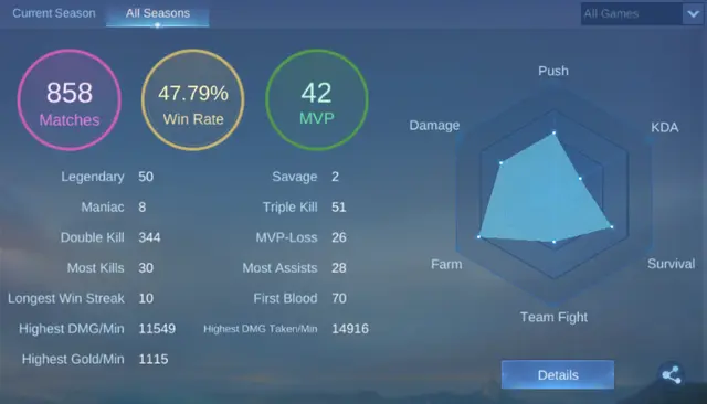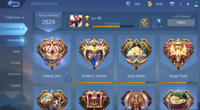 Mobile Legends 👑 EPIC V (Epic II) 💥 Lv 48 🎯 57 Heroes 💎 77 Skins (Collector + Rare) 🔥 Event Skins 🏆 iOS + Android – ML10