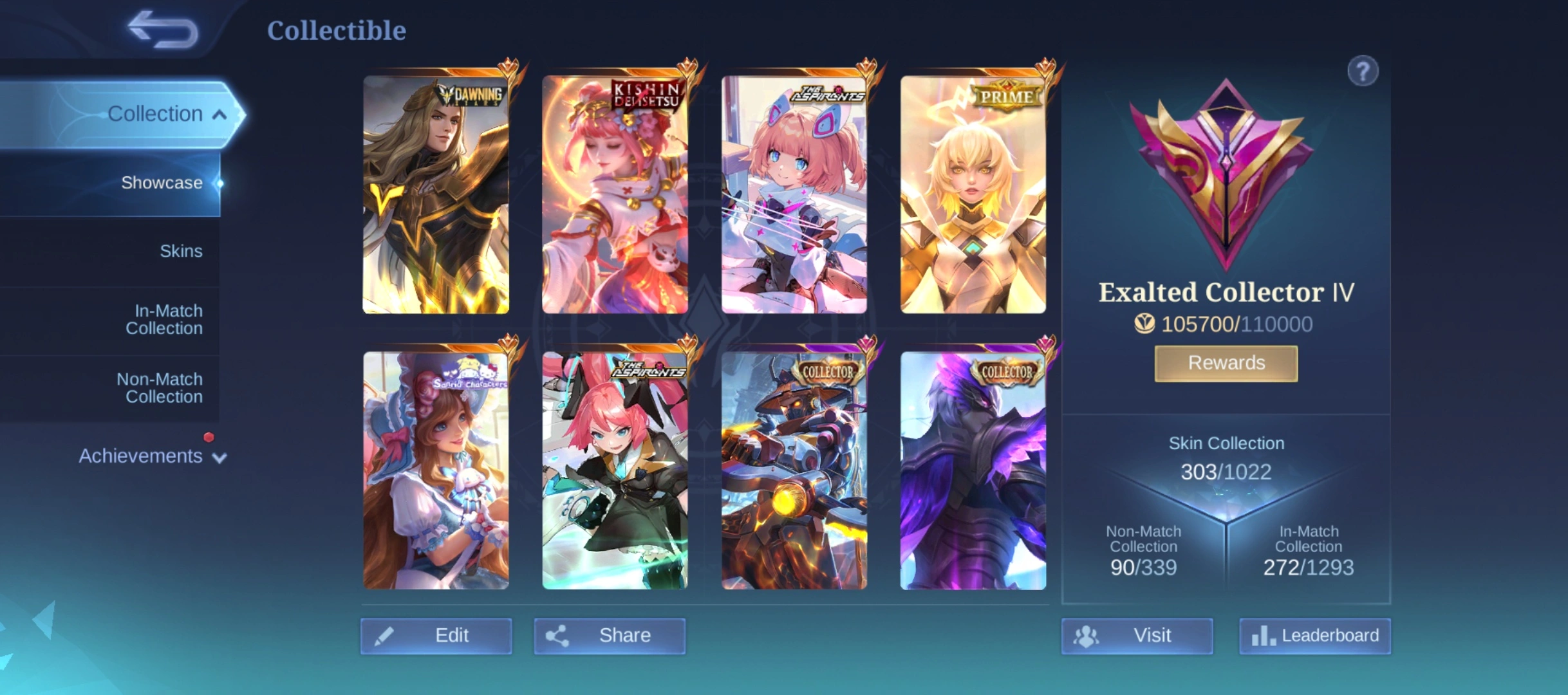 N268|LV 98|EXALTED COLLECTOR IV|303 SKIN|LANCELOT DAWNING|ANGELA KINSHIN|BEATRIX PRIME|2 ASPIRANTS|2 TRANSFORMERS|FLORYN SANRIO|3 COLLECTOR (YSS,GS,ETC)
