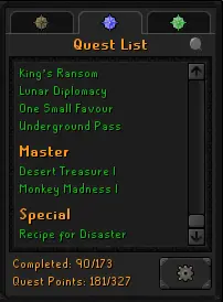 RFD (Barrows gloves) 70 Prayer + Piety 75 Attack/Defence w/ 99 Strength/Range/Magic + Firecape (181 QP) ez3243