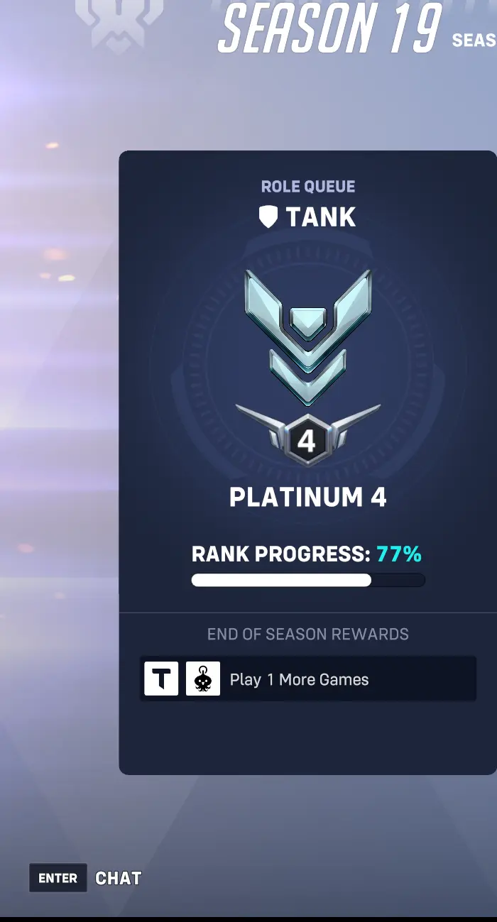 🛡️ [Endorsement 3- Level 85]-[Rank: Platinum Tank][placement Finished] |(Season 19)| ✔Instant | 🛠️ Hand Leveled ✔ plat Tank |