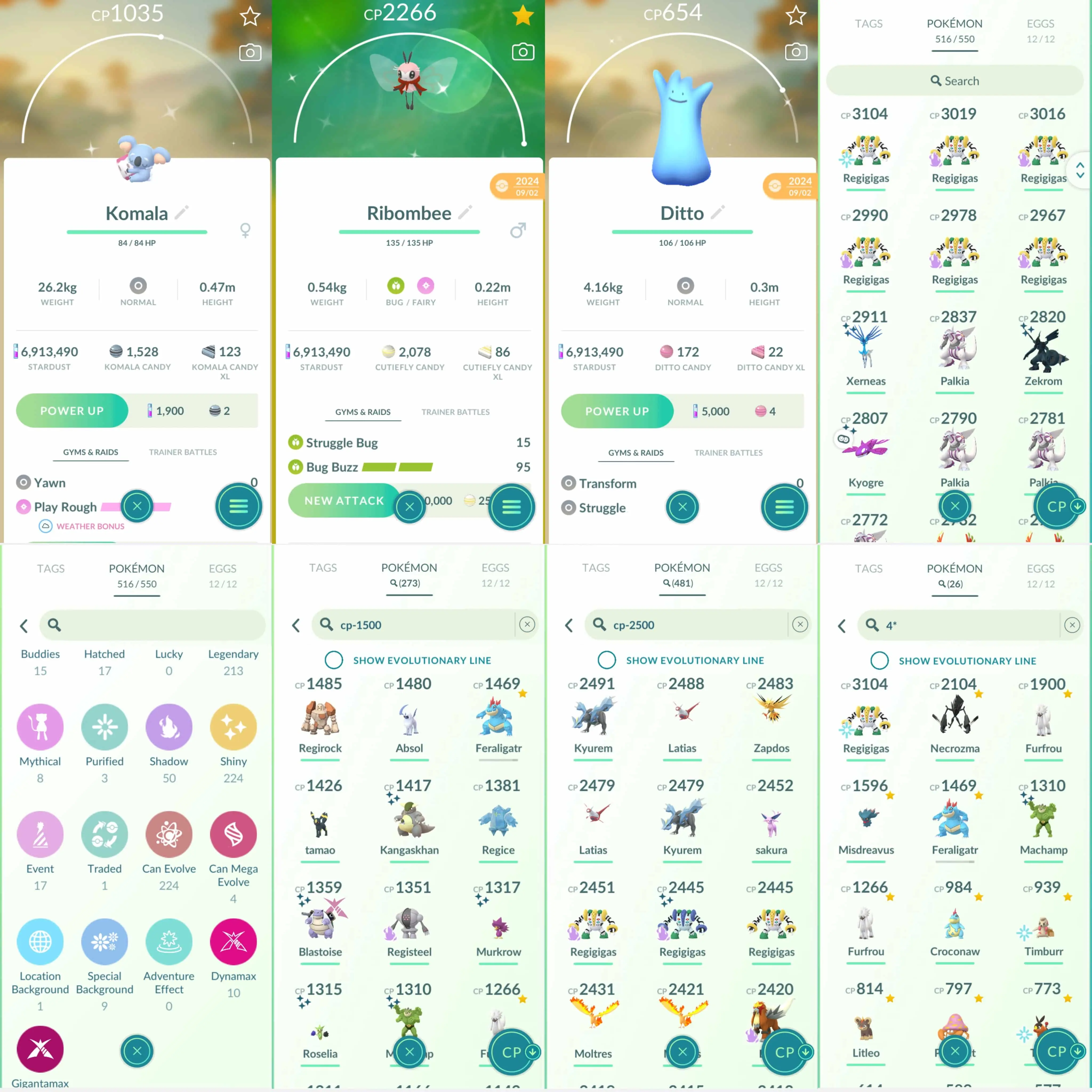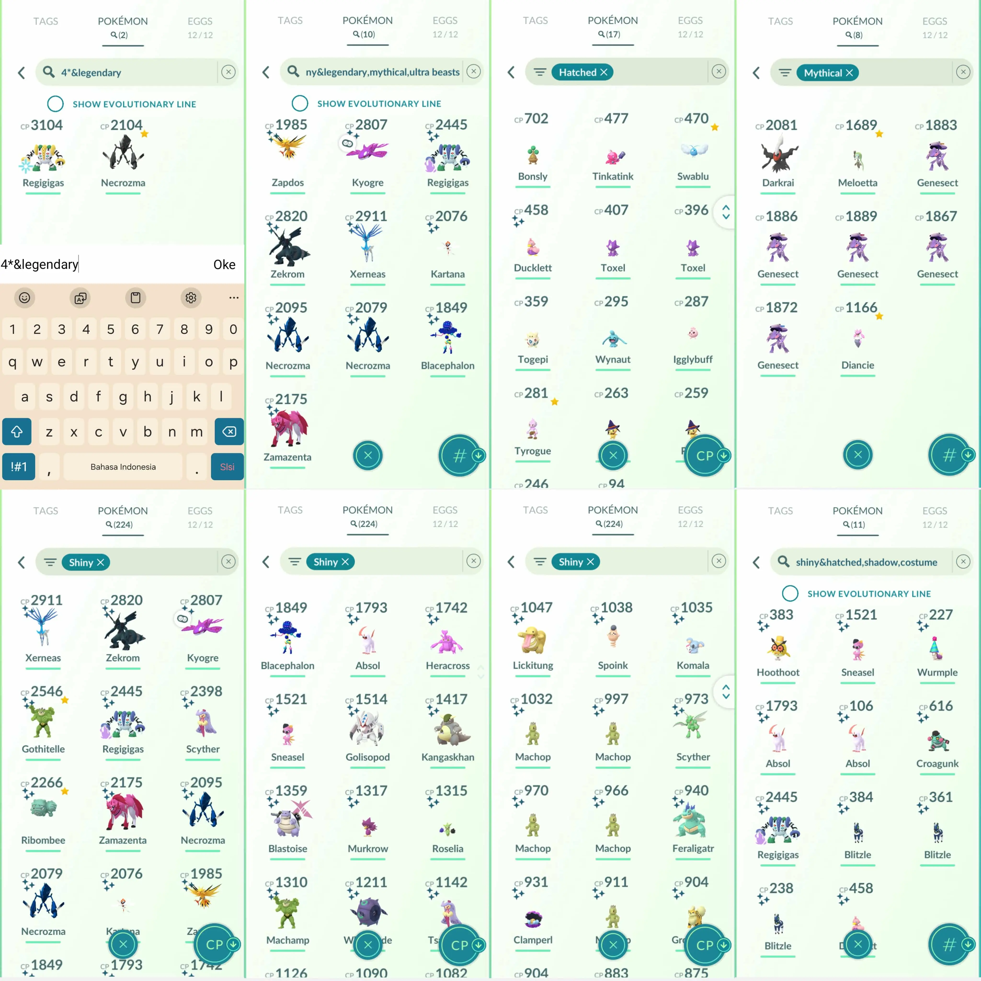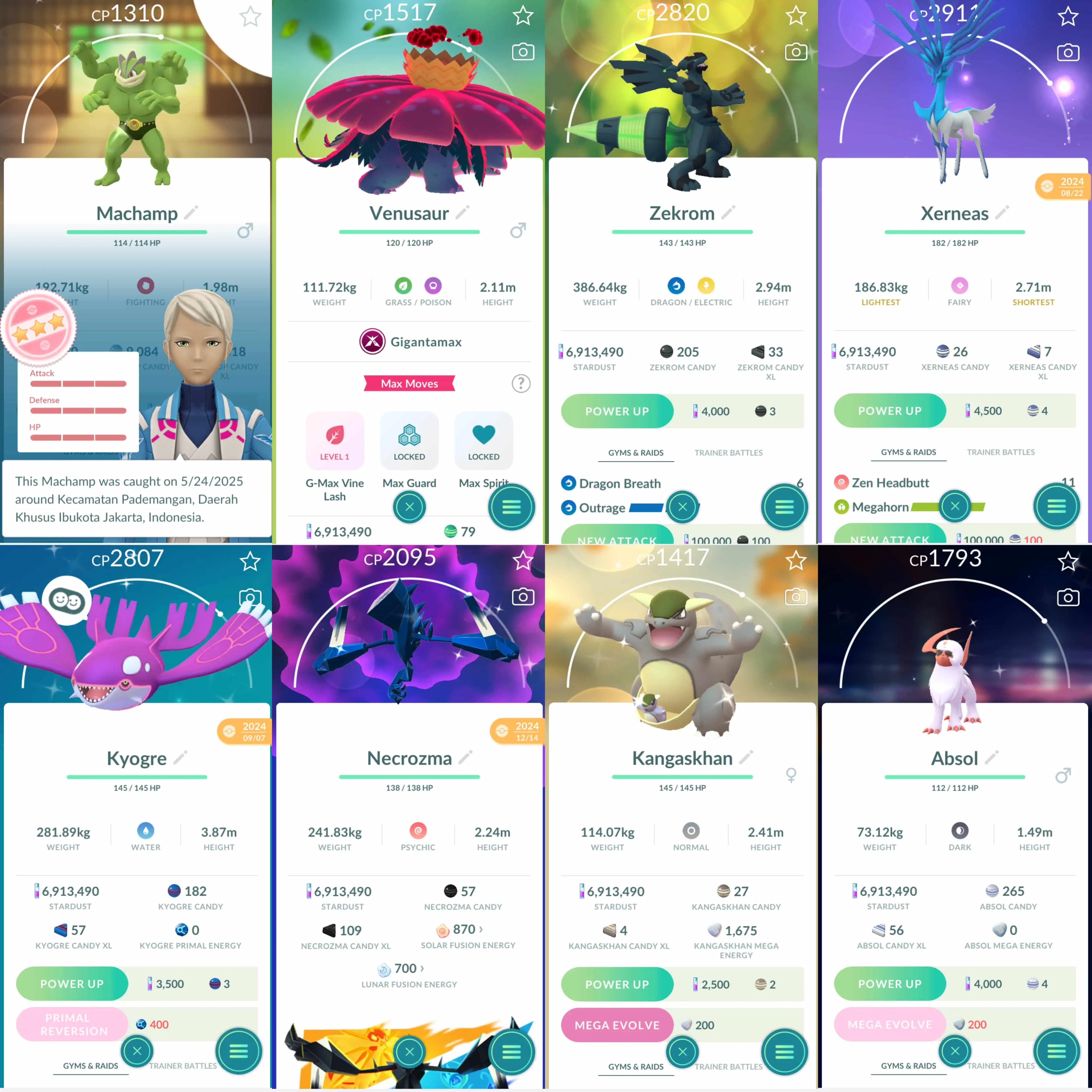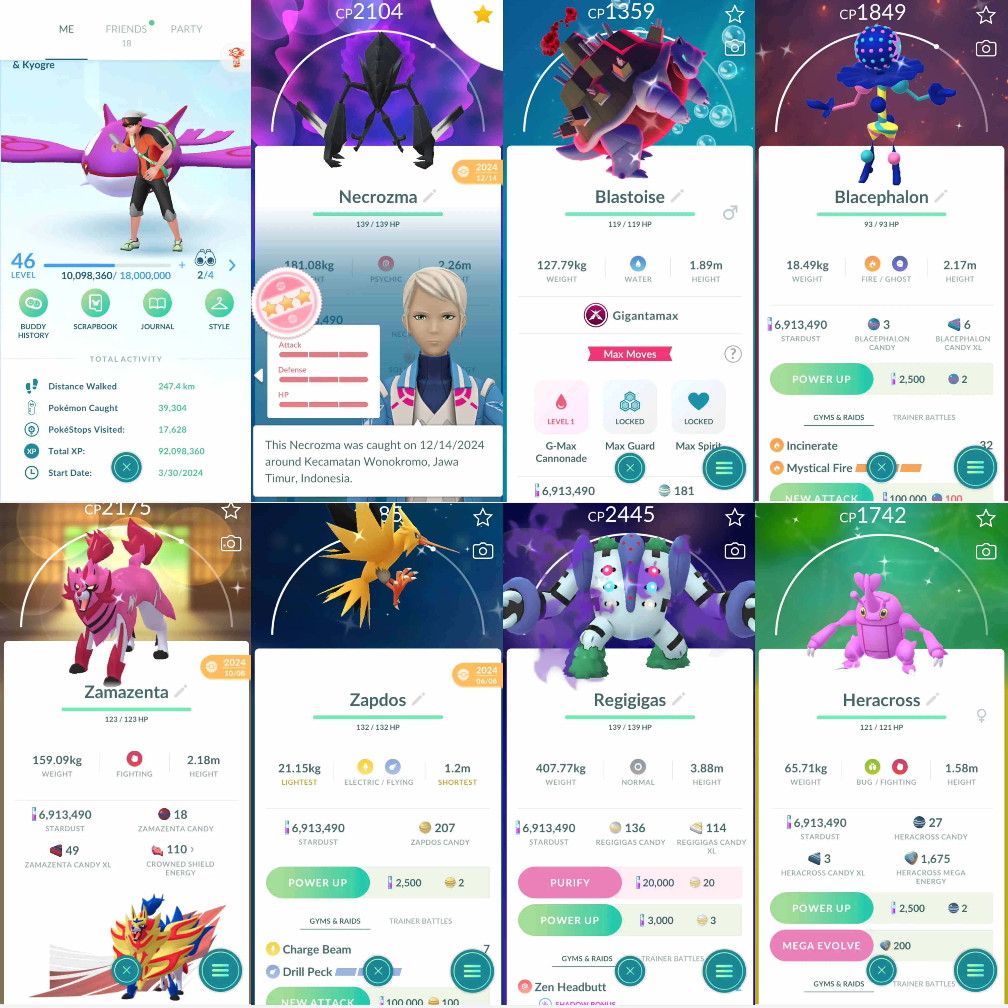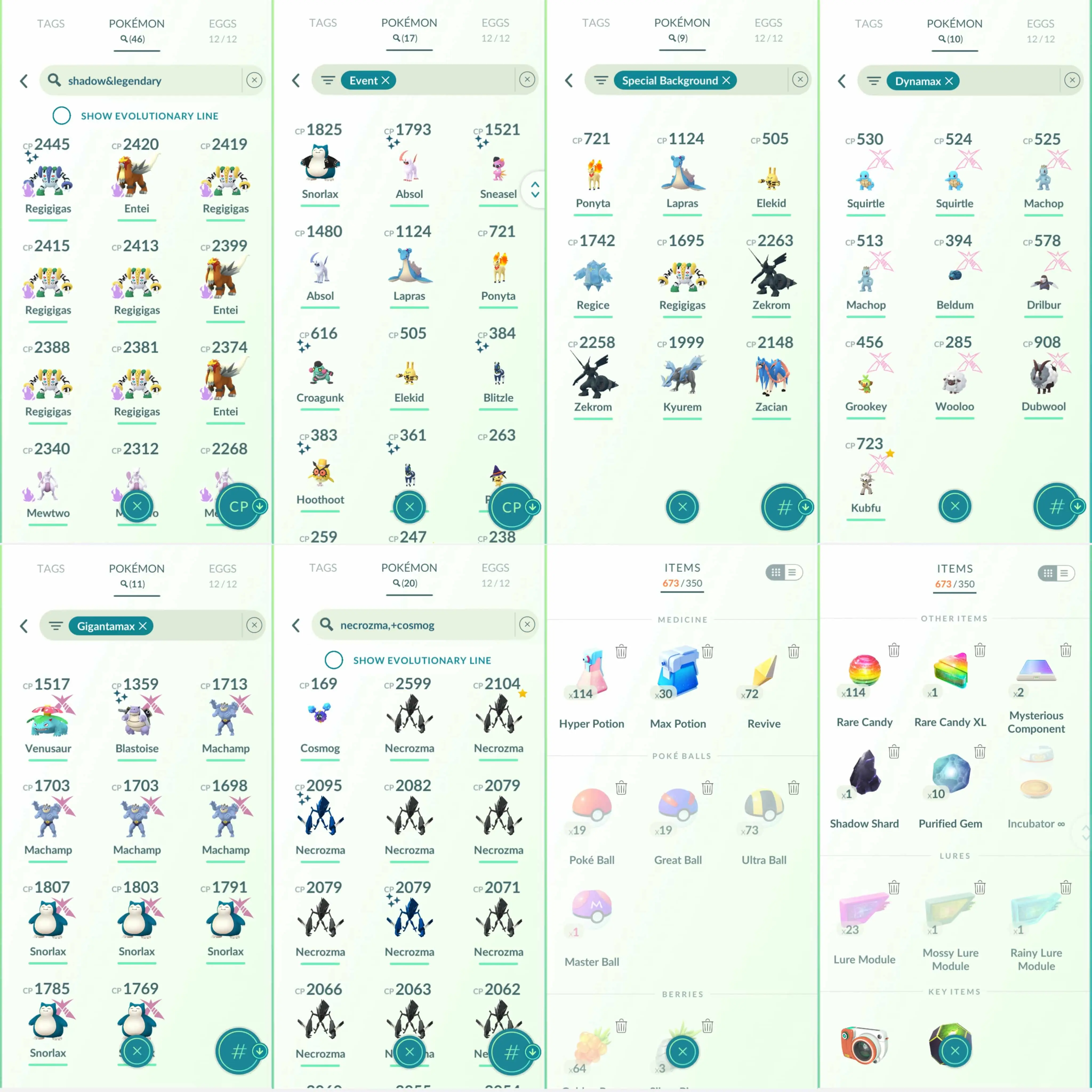 Shiny: mega heracross, mega kangaskhan, blacephalon, necrozma, kartana, xerneas, zekrom, shadow regigigas, kyogre, zapdos, zamazenta, roselia, party hat wurmple, fashioned absol, spoink, komala