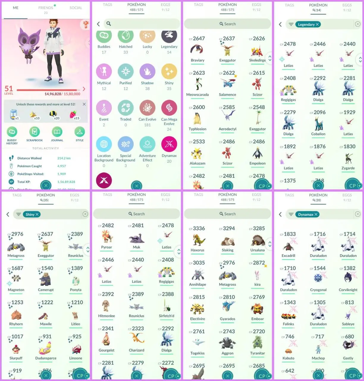 LEVEL 51(VALOR)🌊488/575 Pokemon🌊35 Shiny🌊14 Legendary🌊Name Change Available🌊1131/550 Items🌊Instant Delivery