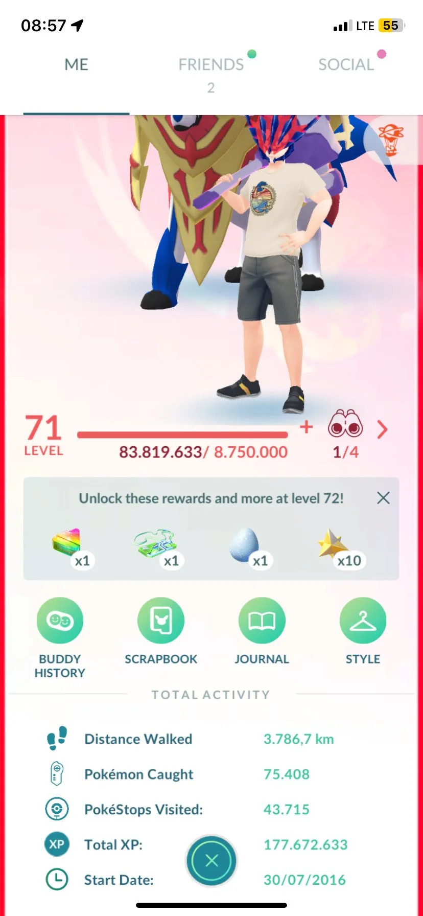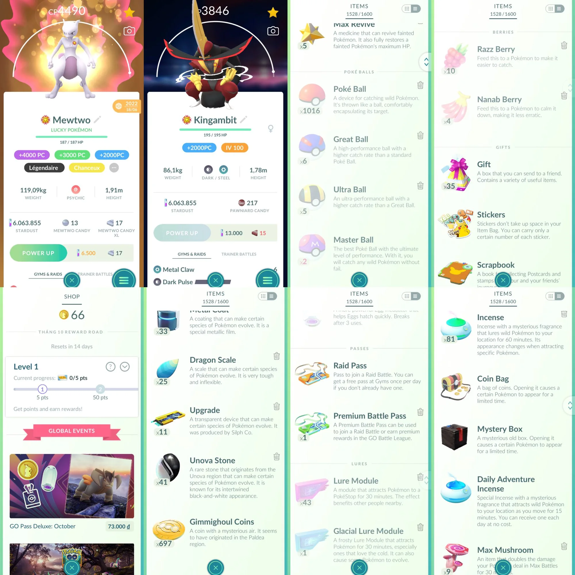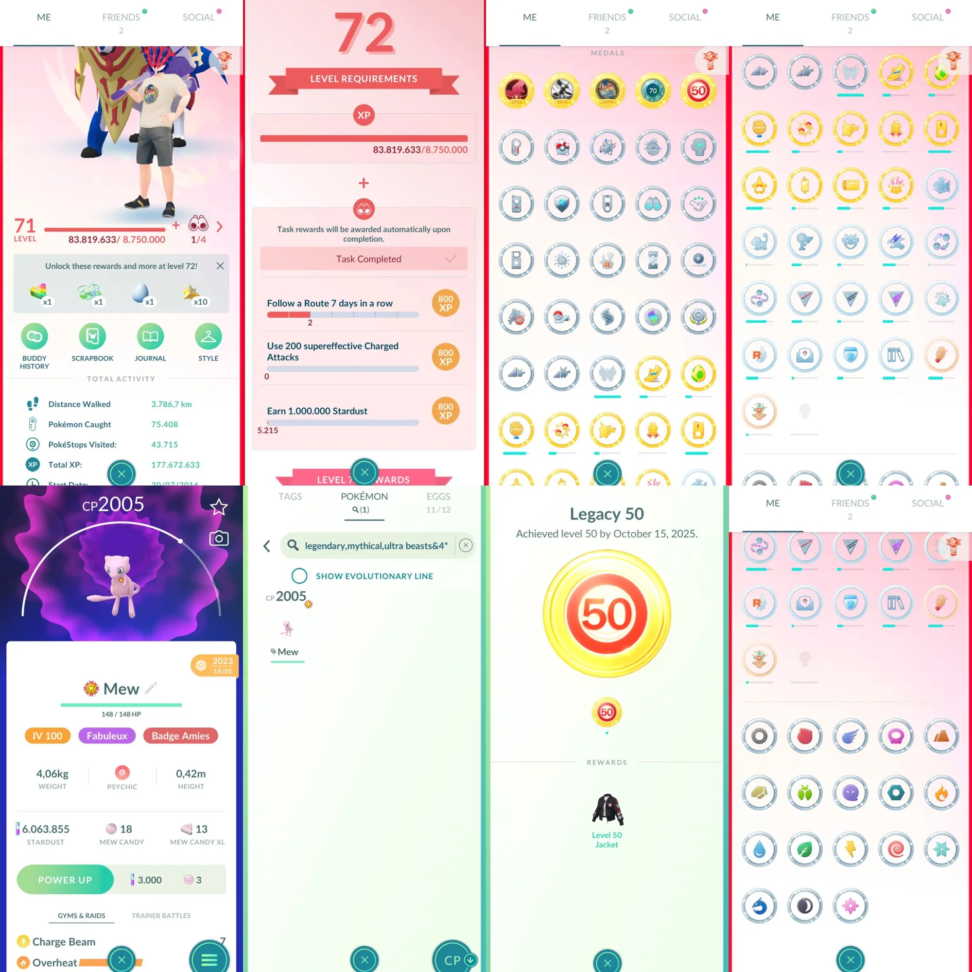Level 71-Mew iv100-41 medal Plantium-6m+ Stardust-270 legend-258 shiny-474 Hundo-36 Shundo-177m+ XP-89 costume-49 lucky-37 Dynamax